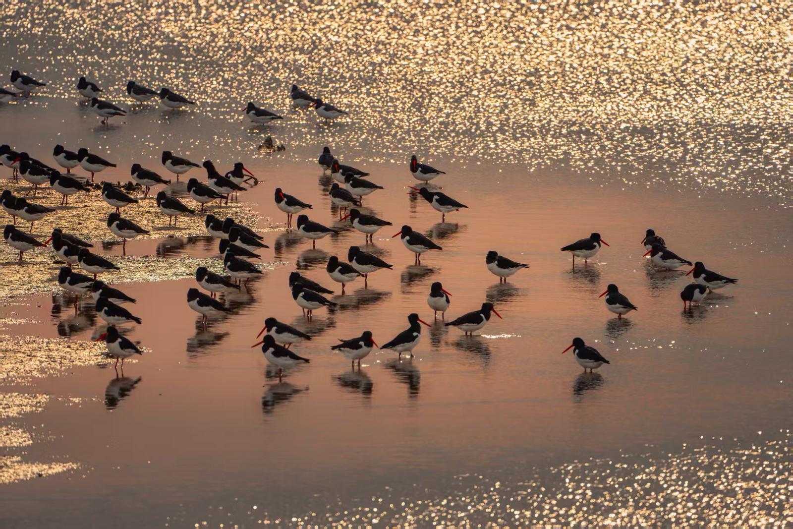 春风拂面,启东江海之畔群鸟飞舞。启东春迁期鸟类主要为黑腹滨鹬、斑尾塍鹬等鸻鹬类。如今,江海澜湾旅游度假区、圆陀角旅游度假区、启隆镇等地,已成为观鸟爱好者的“打卡胜地”。每当潮起潮落,成群的鸟儿在滩涂上觅食嬉戏,这里是鸟类的乐园,也是人与自然和谐共生的生动课堂。