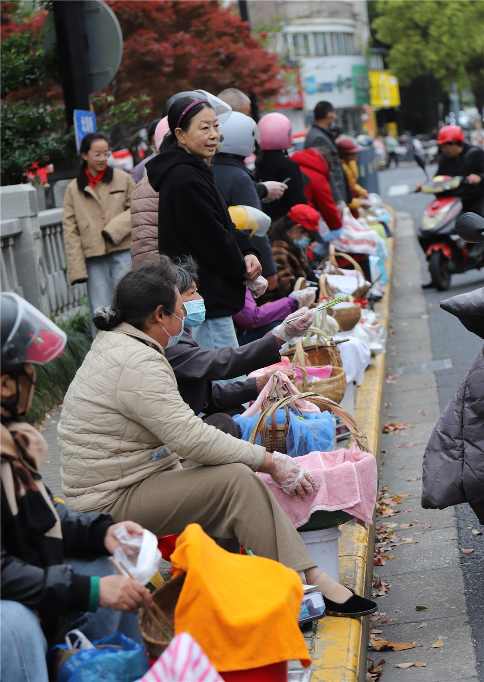清明节一过,南通街头巷尾便弥漫起一股独特的青麦香气。一年一度的春日限定美食“冷蒸”如期上市,这份色泽青碧、软糯清甜的时令小吃,再次撩动着南通人的味蕾。4月21日,记者在市区北濠桥冷蒸疏导点拍摄到,售卖冷蒸的商户一字排开,吸引众多市民有序购买。