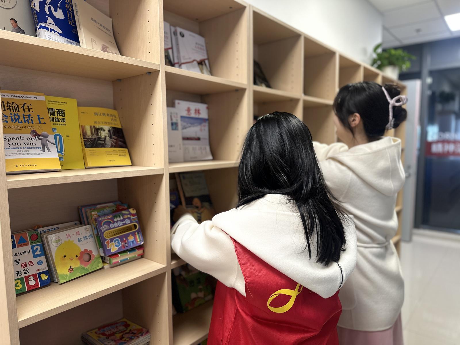 在Pianta儿童关爱中心隔壁,是社区长期面向居民开放的睦邻书吧,其藏书覆盖儿童绘本、亲子教育、心理疗愈、人文成长等多个品类,兼顾孩子阅读与家长成长需求。现场,来自“爱在观山”志愿服务团队母爱书院的5位志愿者正式被聘为阅读推广人。
