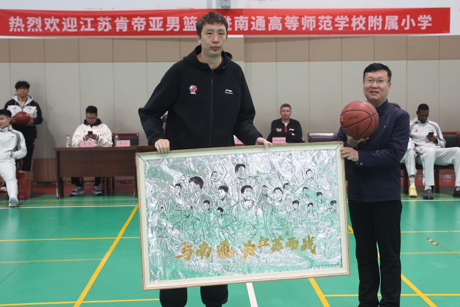 “肯帝亚,必胜!江苏队,必胜!”21日,南通高等师范学校附属小学三楼体育馆内,呐喊助威声几乎把屋顶掀翻。江苏肯帝亚男篮的队员们走进校园,通过趣味化、游戏化互动,为同学们带来一堂别开生面的“体育课”,传递篮球运动的激情与职业体育的精神。