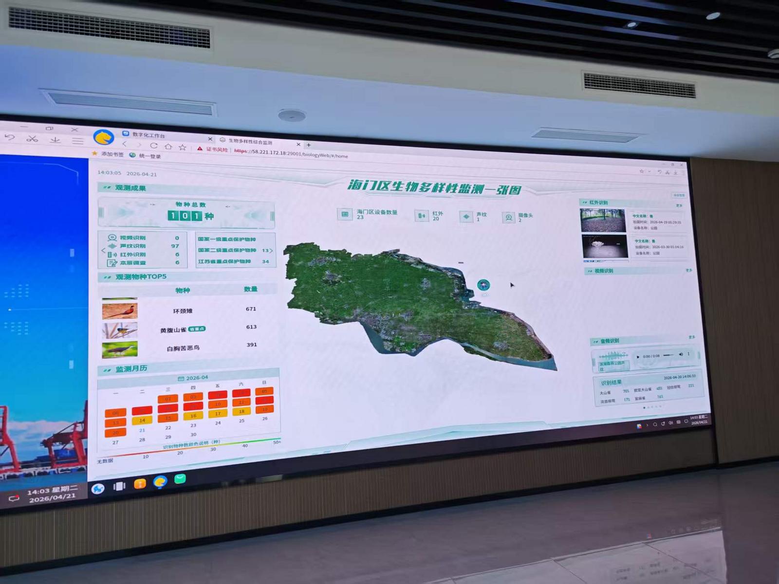 在第57个世界地球日来临之际,“珍爱自然资源 守护美丽中国”主题宣传活动在江海大地蓬勃开展。在海门港经济开发区,一套全新的生物多样性观测设施正24小时不间断运转,实时捕捉伪虎鲸、江豚、黑嘴鸥等沿海湿地的物种动态与生态变迁。这不仅是数字生态绿港建设工程的生动缩影,更是以科技之手守护自然基底、践行人与自然和谐共生的鲜活例证。