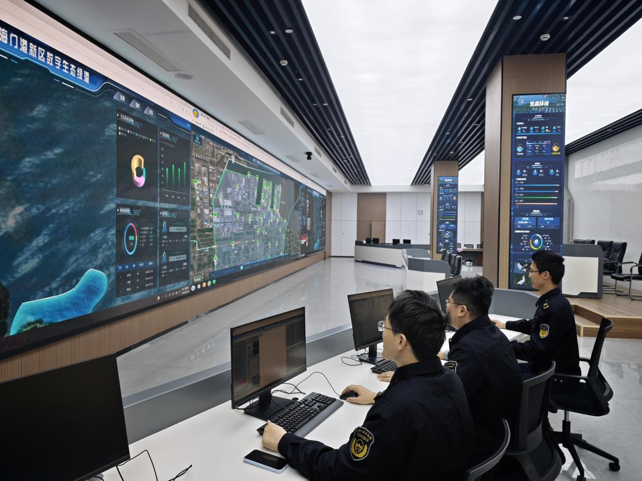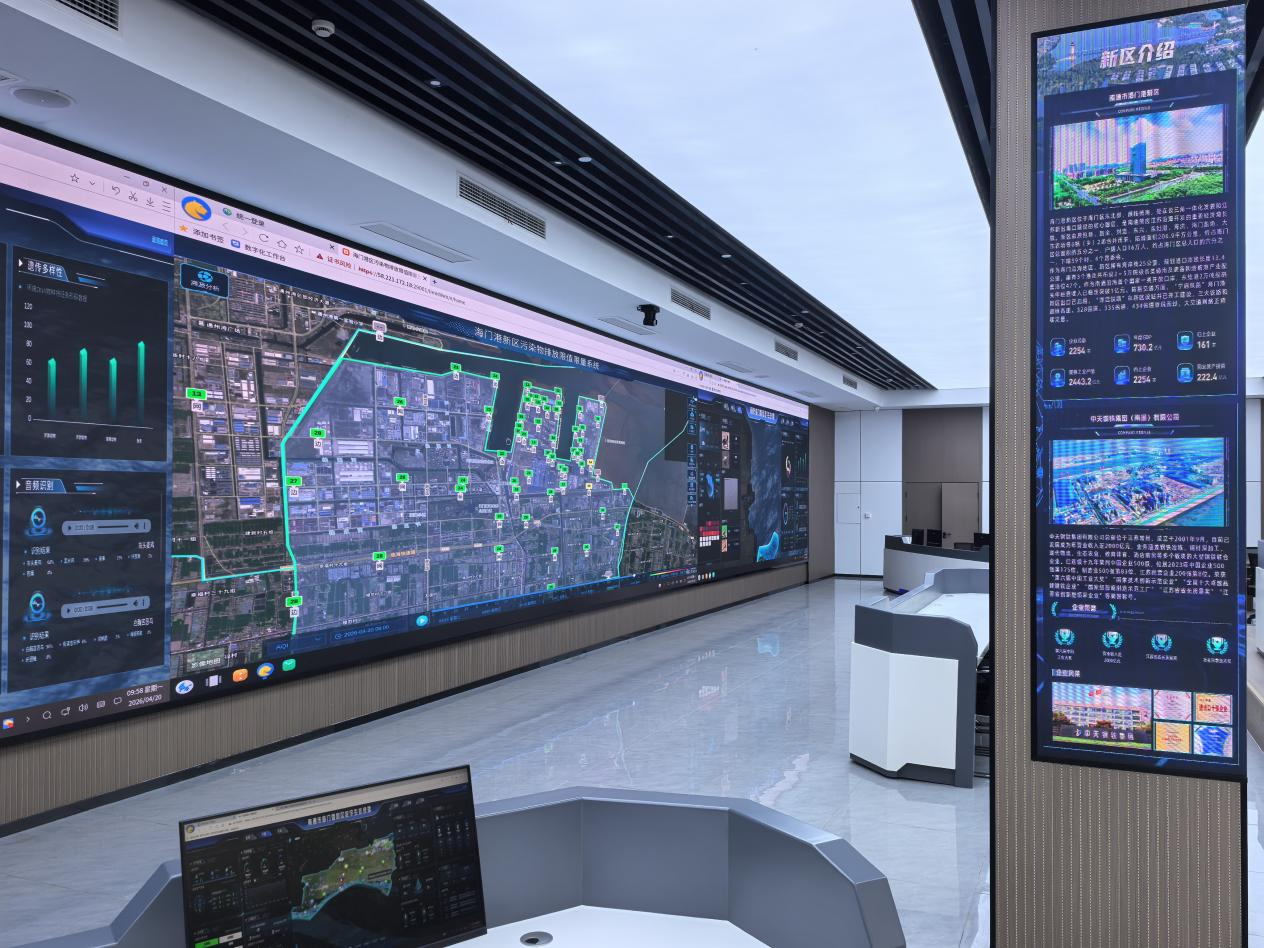 如果说全要素感知网络是生态保护的“千里眼”,那么一体化数字平台与指挥调度中心,便是江苏海门港经济开发区生态治理的“智慧大脑”。南通市海门生态环境局相关负责人介绍,数字生态绿港项目建成了集日常办公、监管执法、公众服务于一体的工作站,充分契合“一网统管”的现代化治理需求。