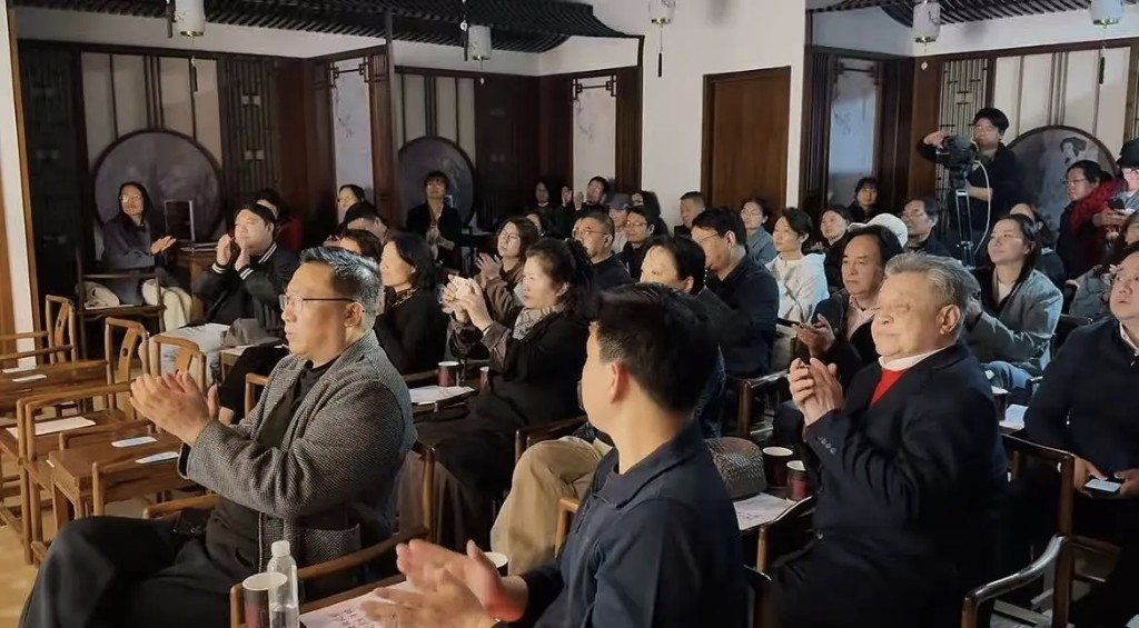 部分专家学者齐聚启东瀛东书厅,观看由启东评弹团原创的中篇评弹《浮生六记》专场演出