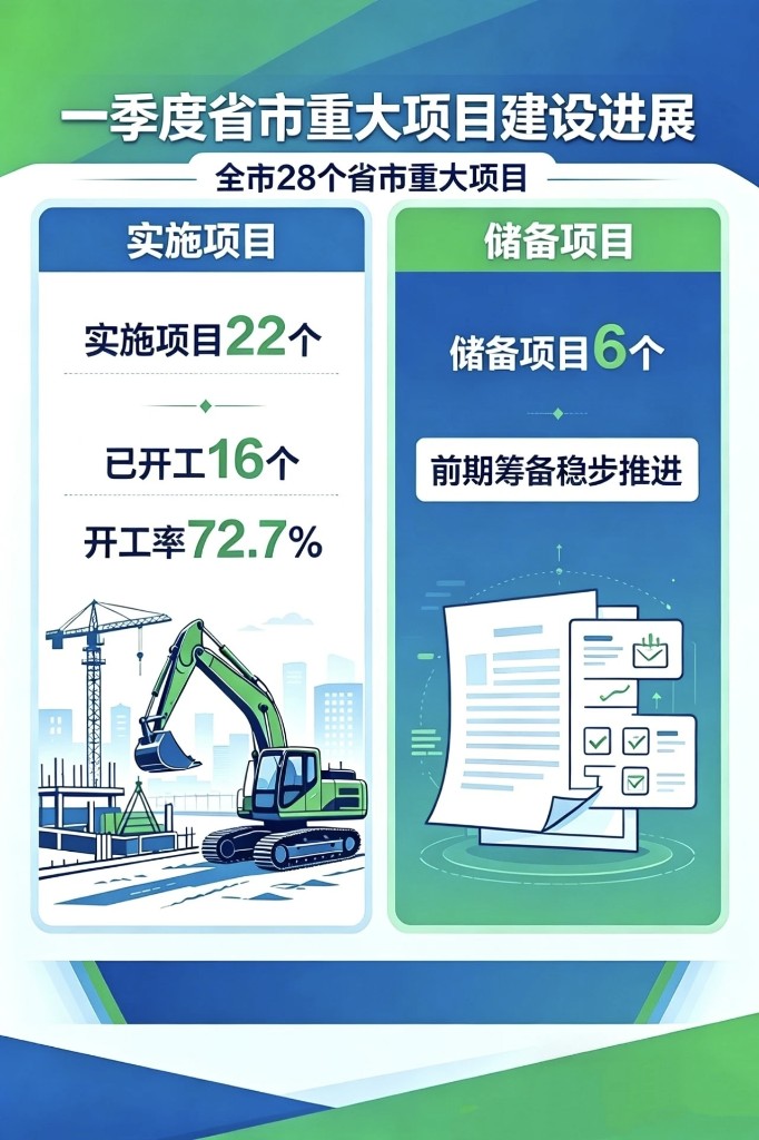 重大项目是稳定经济增长的压舱石,也是推动经济高质量发展的强引擎。燕达项目的快速推进,是今年启东大抓项目、抓大项目的生动缩影。一季度,启东全市28个省市重大项目锚定目标、全速奔跑,其中实施项目22个,已开工16个,开工率72.7%;储备项目6个,各项前期筹备工作正稳步推进。