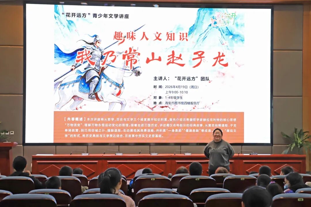 4月19日上午,海安市图书馆“花开远方”青少年文学讲座开讲,主讲人通过图文展示与故事讲述的形式,带领小读者们穿越时空,一睹三国名将赵子龙的风采。当天下午,海门区图书馆第二届“张謇杯”阅读马拉松亲子挑战赛火热开赛,70余组亲子家庭齐聚一堂,共读寓言故事、交流阅读感悟,在浓郁书香中度过美好的亲子阅读时光。22日下午,如皋市图书馆“古籍进校园”特色活动走进如皋中学,通过古籍版本知识科普、线装书实操体验,让青少年近距离触摸古籍之美,让中华优秀传统文化在薪火相传中生生不息。