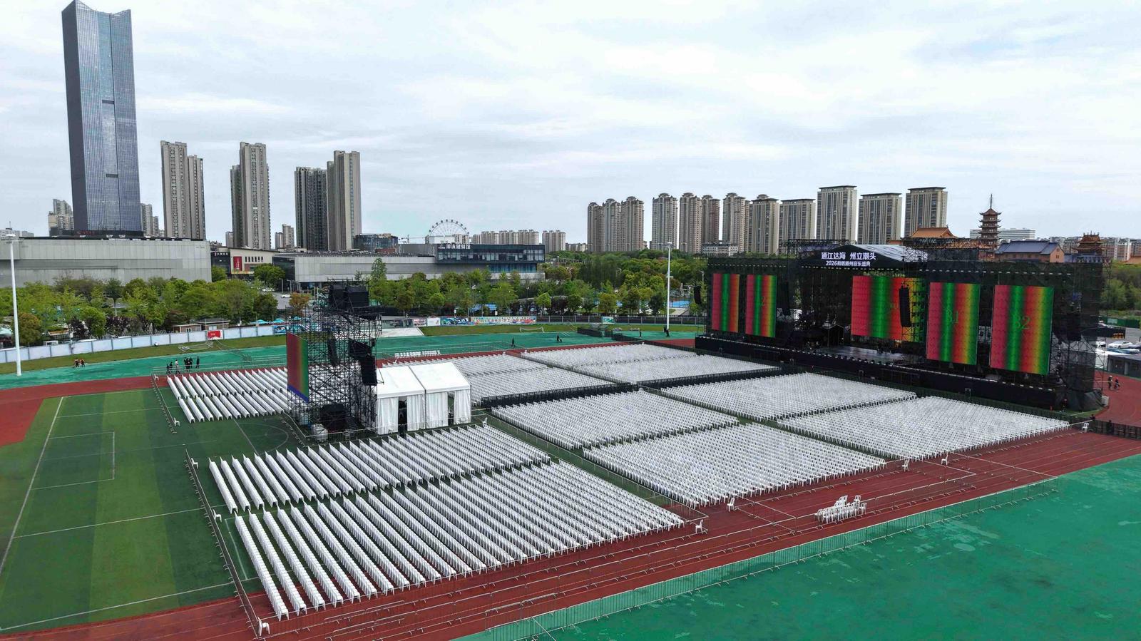 距离“通江达海 州立潮头”2026相遇通州音乐盛典正式演出仅剩2天时间。4月23日下午,记者提前探班本次音乐盛典举办场地——南通市通州区体育中心足球场,实地探访各项筹备工作进展,提前解锁这场音乐盛会的精彩看点。