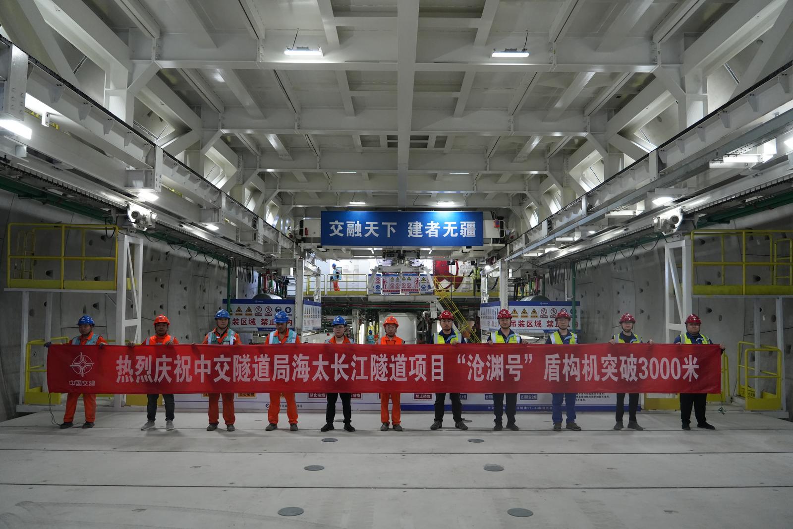 20日,在南通长江入海口,中交隧道局承建的海太长江隧道左线盾构机“沧渊号”完成第1500环掘进,累计掘进里程突破3000米。