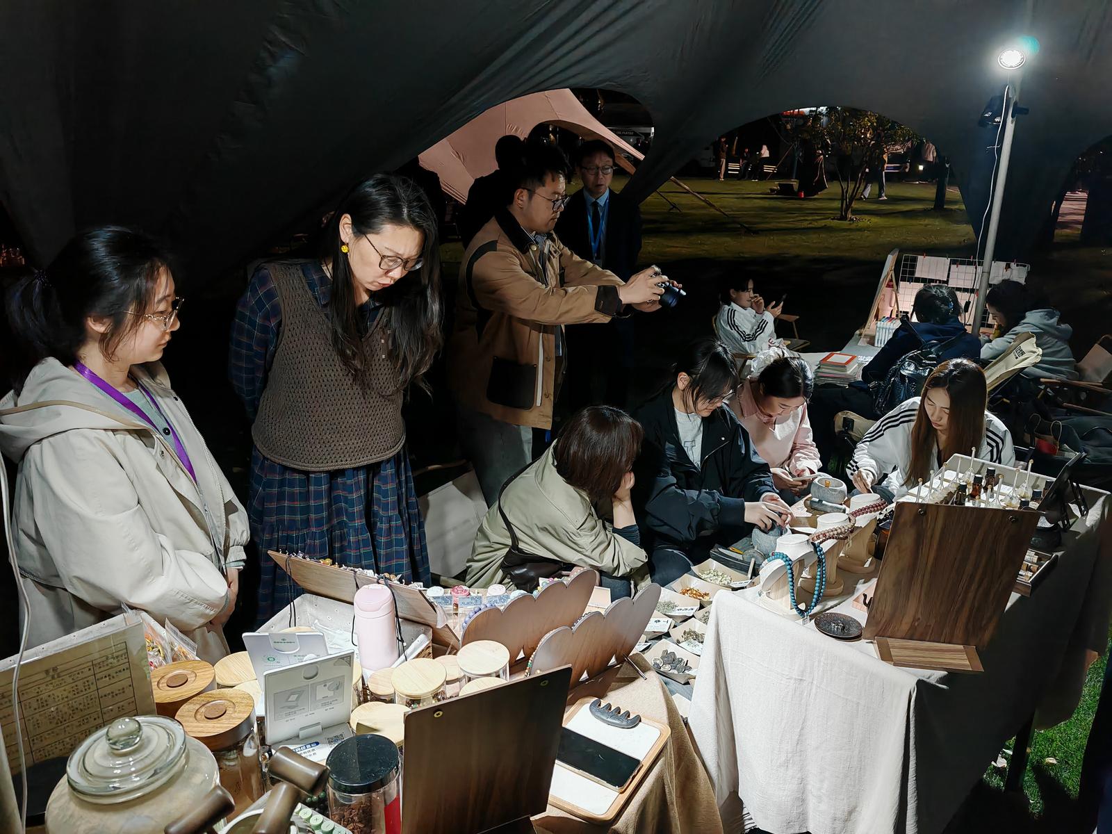 当晚的博物苑内,烟火市集,诗意盎然。梅庵古琴和交响乐彼此唱和,蓝印花布、沈绣、灯彩等非遗手作主理人现场互动,“苏超”文创、通城美食展位前人气满满,让人邂逅一场非遗与美学共生的博物馆奇妙夜!这一夜,濠河之滨,灯光璀璨,嘉宾乘兴泛舟夜游,为“濠河夜画”的精致浪漫而沉醉。