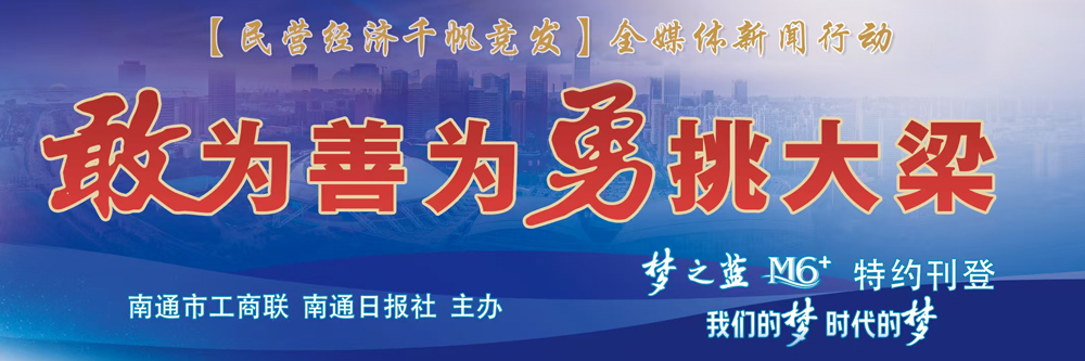 近期,从中央到地方持续加密政策、加大力度,不断优化民营企业发展环境,广大民营企业和民营企业家大显身手正当其时。市工商联、南通日报社联合洋河股份推出“敢为善为勇挑大梁”系列报道,聚焦江海大地上民营经济千帆竞发的生动图景,讲述新时代新征程广大通商弘扬张謇企业家精神,抢抓机遇、勇立潮头的动人故事,展现各部门推动民营经济发展的生动实践和经验启示。