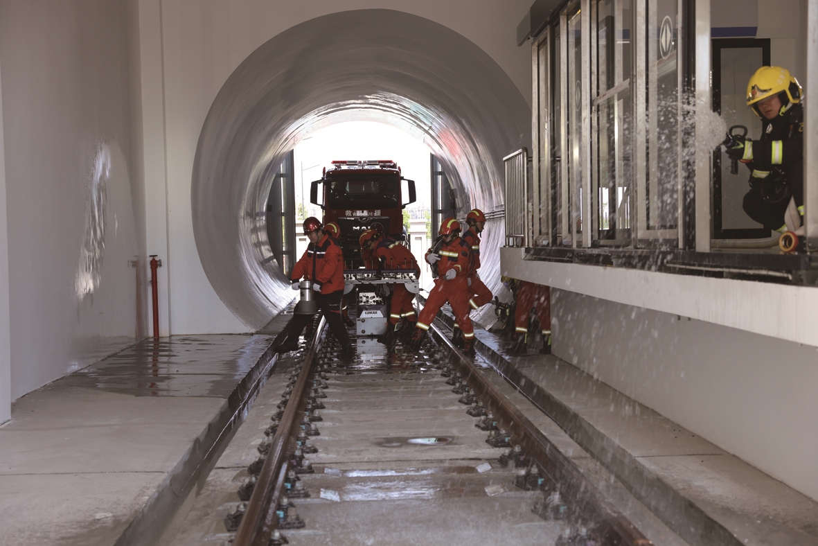 当火焰蓝遇见科技范,市民沉浸式体验地铁隧道消防救援的特殊性。朱妃