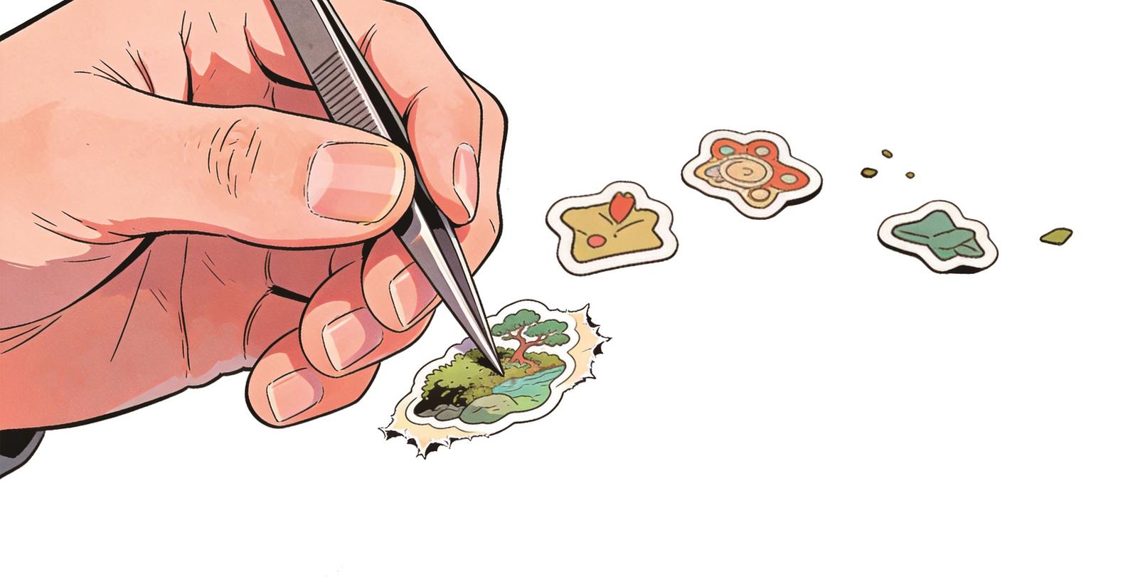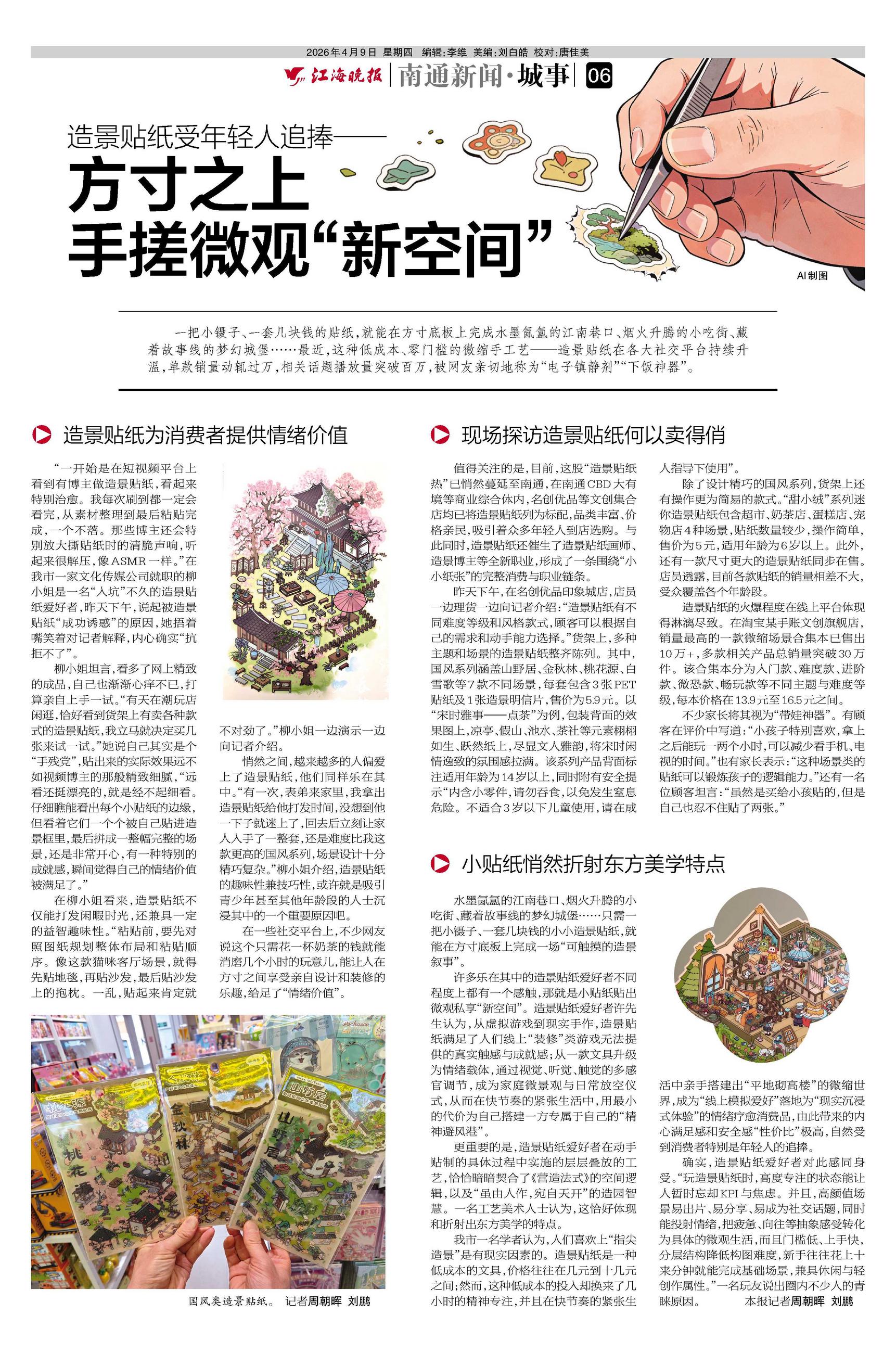 一把小镊子、一套几块钱的贴纸,就能在方寸底板上完成水墨氤氲的江南巷口、烟火升腾的小吃街、藏着故事线的梦幻城堡……最近,这种低成本、零门槛的微缩手工艺——造景贴纸在各大社交平台持续升温,单款销量动辄过万,相关话题播放量突破百万,被网友亲切地称为“电子镇静剂”“下饭神器”。