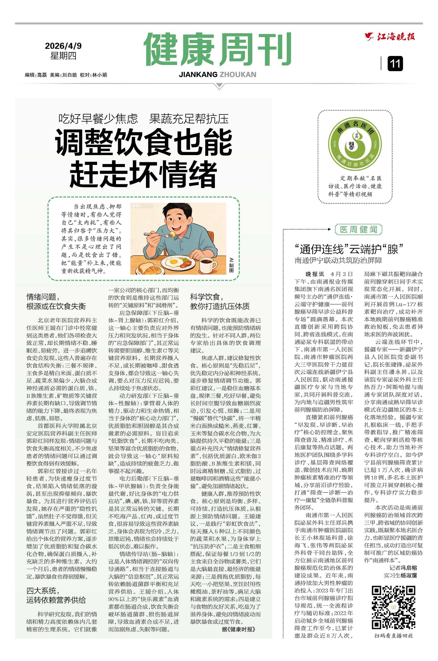 首都医科大学附属北京安定医院营养科副主任医师郭彩红同样发现:情绪问题与饮食失衡高度相关,不少焦虑患者的情绪问题可以通过调整饮食得到有效缓解。