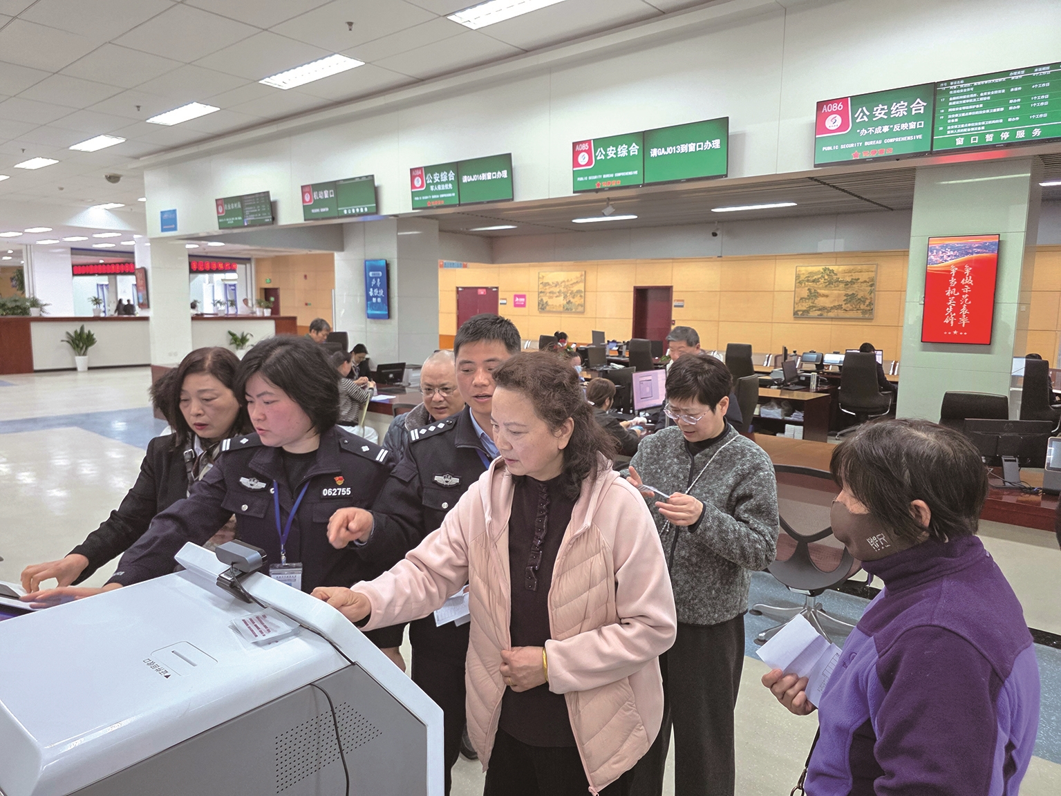 昨天,市民在南通市政务服务中心公安综合窗口自助领证区换领身份证。今年南通市共有130余万户籍居民二代身份证到期,全市132个办理点实行“全域通办”,至今已有60万居民换领了身份证。记者许丛军