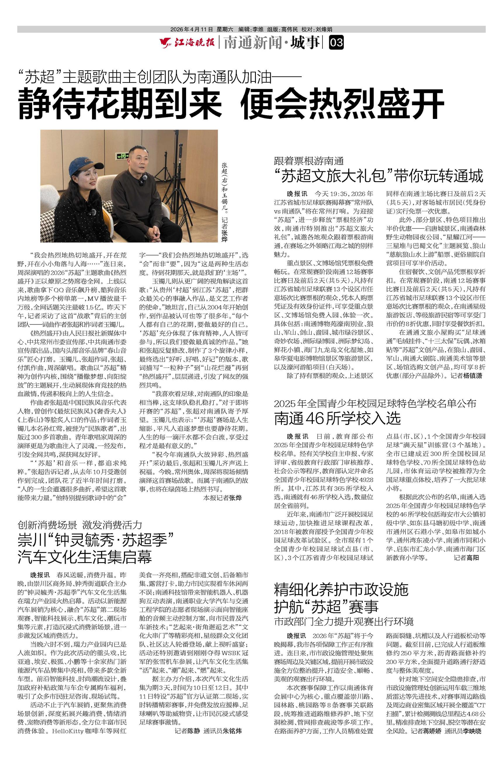 晚报讯 2026年“苏超”将于今晚揭幕,我市各项保障工作正有序推进。连日来,市市政设施管理处聚焦赛场周边及关键区域,提前开展市政设施全方位整治提升,打造安全、顺畅、美观的观赛出行环境。