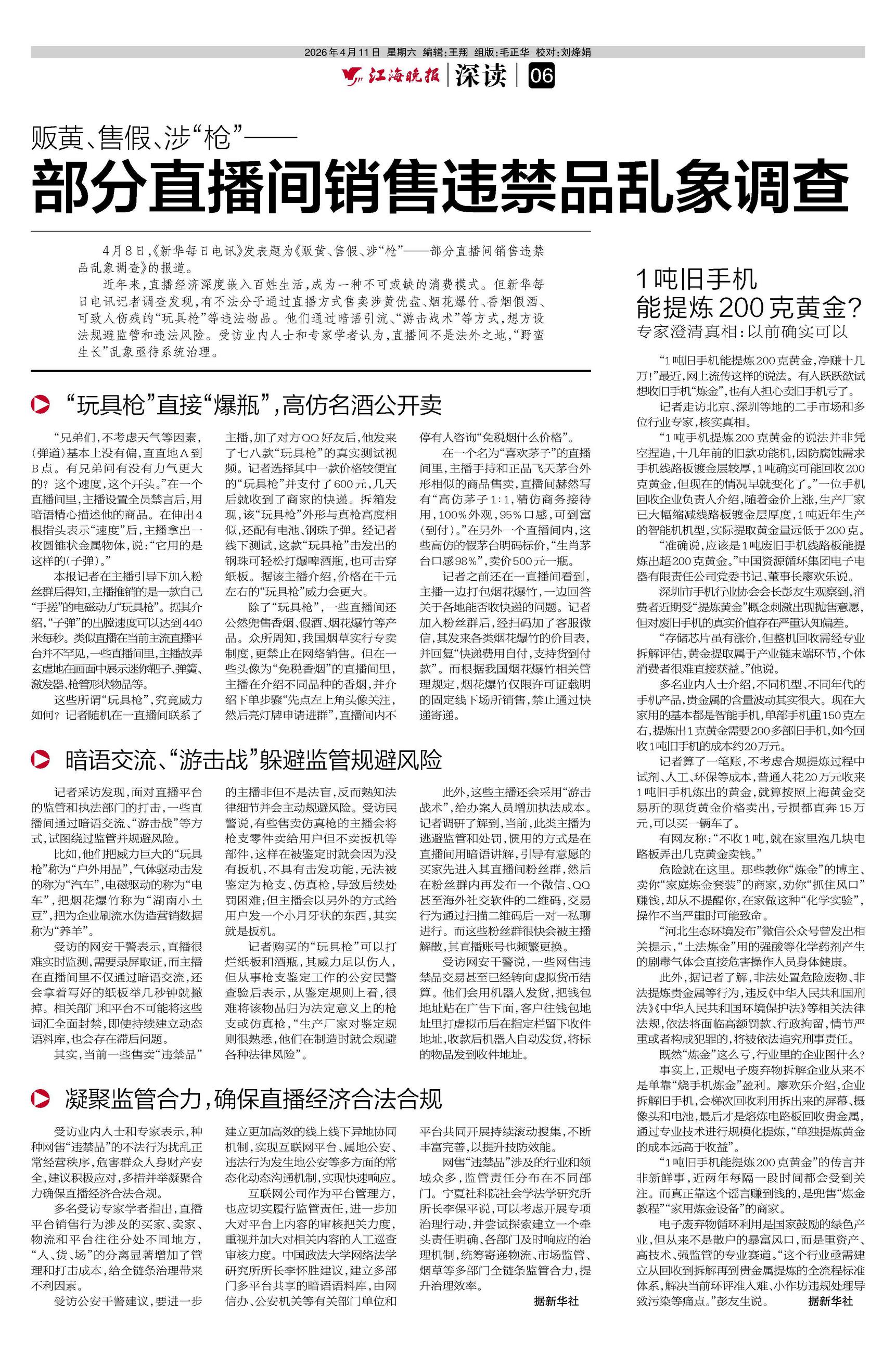 电子废弃物循环利用是国家鼓励的绿色产业,但从来不是散户的暴富风口,而是重资产、高技术、强监管的专业赛道。“这个行业亟需建立从回收到拆解再到贵金属提炼的全流程标准体系,解决当前环评准入难、小作坊违规处理导致污染等痛点。”彭友生说。 据新华社