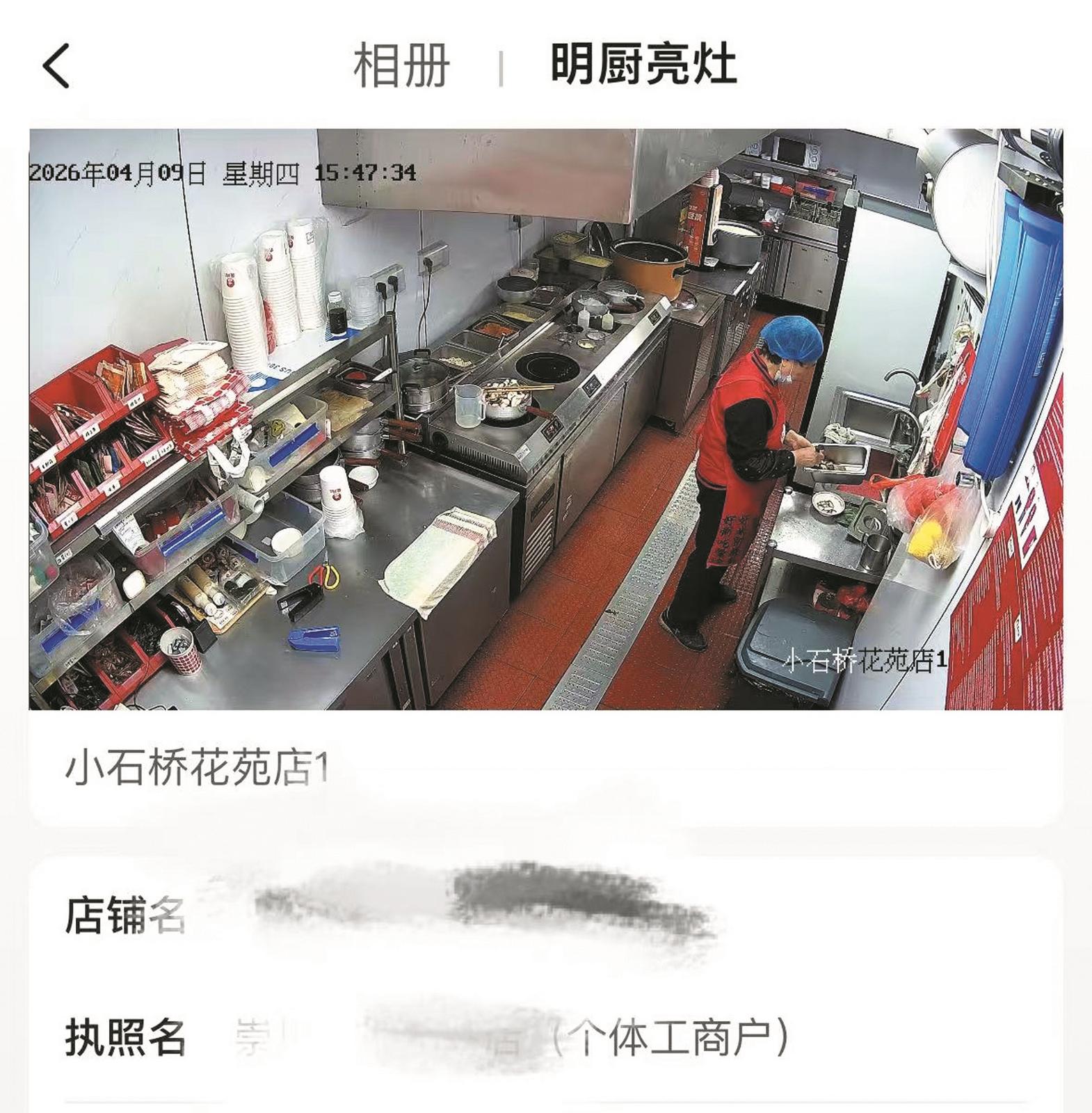 某外卖平台上通过“明厨亮灶”页面展示的某商家后厨实时画面。