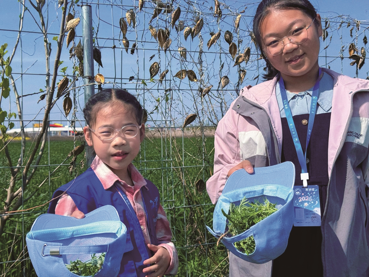工作人员用通俗易懂的语言为小记者们讲解清明的由来、传统习俗。随后,小记者们怀着满心好奇,走进绿意盎然的田间地头,开启了艾草与青蒿的“寻踪之旅”。在工作人员的指引下,大家弯腰俯身,仔细辨认植物的形态差异,触摸叶片的细腻纹理,呼吸着草木特有的清香,亲手采摘新鲜艾草与青蒿。指尖拂过翠绿的叶片,耳畔回荡着欢声笑语,孩子们的兴致在自然的怀抱中尽情绽放。