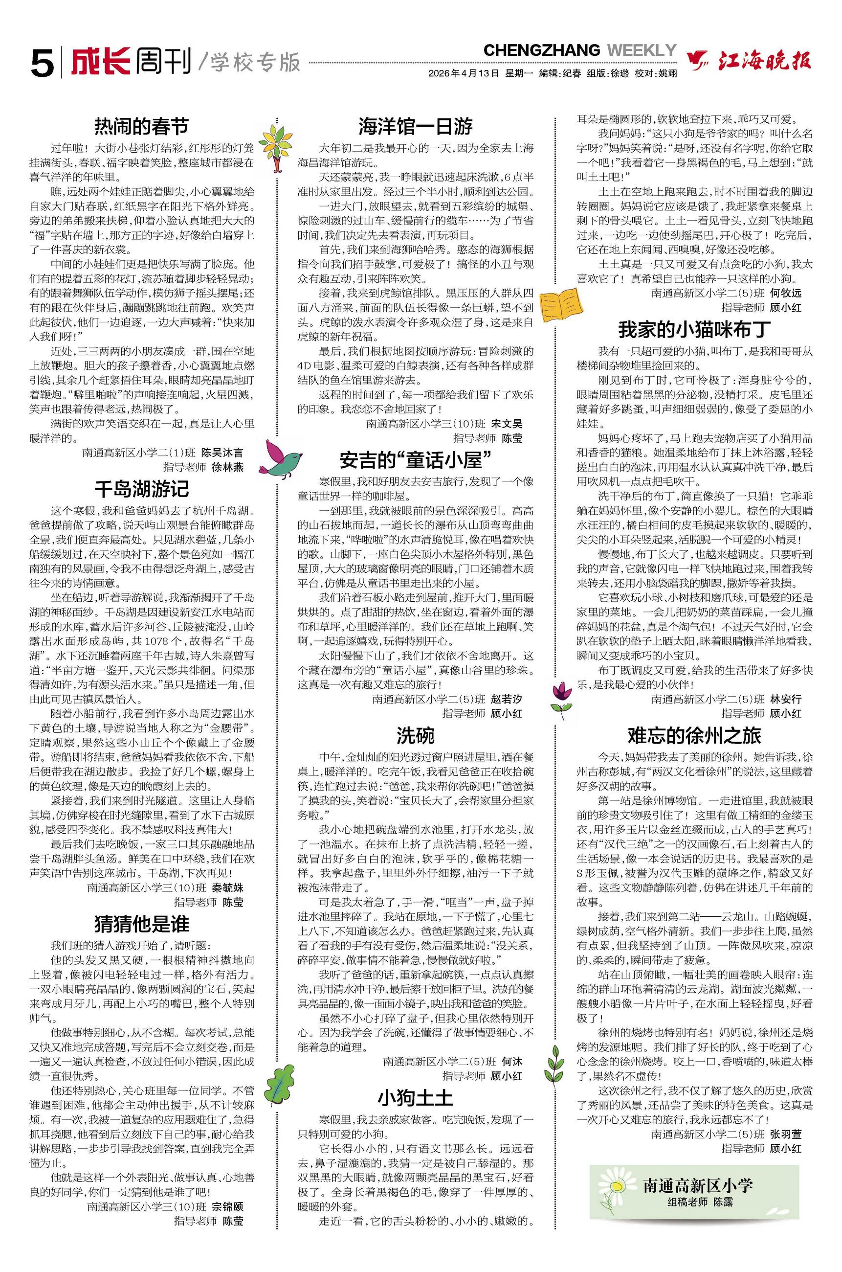 南通高新区小学二(5)班 赵若汐