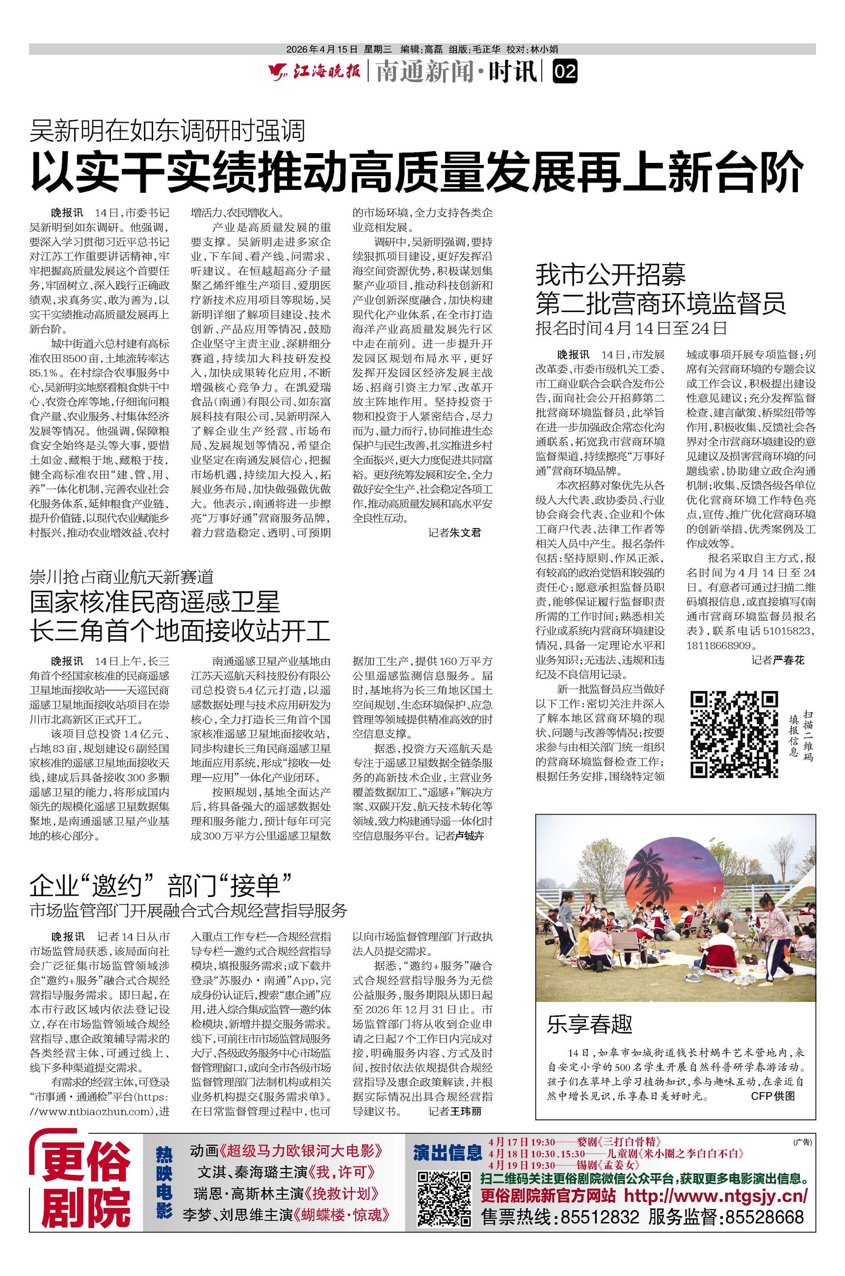晚报讯 14日,市发展改革委、市委市级机关工委、市工商业联合会联合发布公告,面向社会公开招募第二批营商环境监督员,此举旨在进一步加强政企常态化沟通联系,拓宽我市营商环境监督渠道,持续擦亮“万事好通”营商环境品牌。