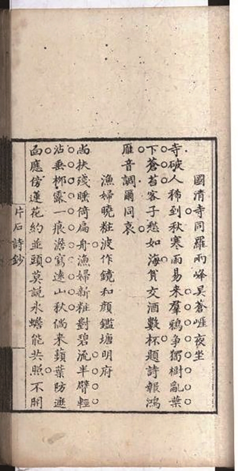 《片石诗钞》页中《国清寺同罗两峰吴苍崖夜座》诗