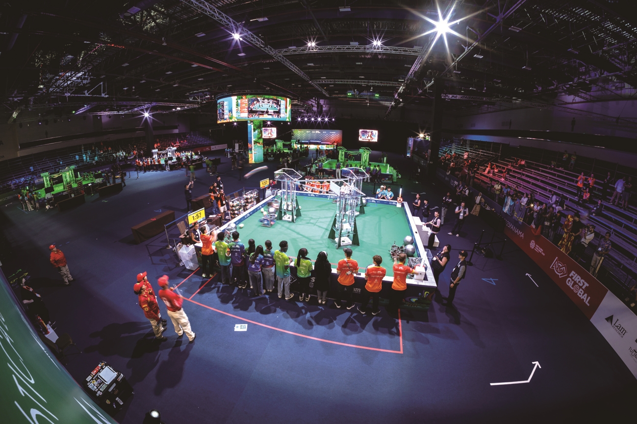 这是1日在巴拿马首都巴拿马城拍摄的2025年FIRST全球机器人挑战赛现场。