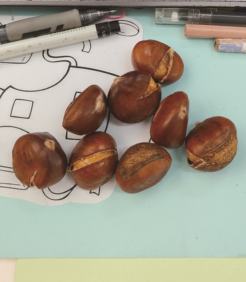 我也尝了一颗,那股栗子特有的甜糯与温热在舌尖晕开,像给紧绷的神经做了个SPA。剥栗子需要耐心,急不得。女人的长指甲起到了撬杆作用,嵌进开好口的栗子缝里轻轻一掰,有时很顺利,有时要费些劲儿。好比处理日常工作的难题,偶尔卡顿住了,热心同事会自然地接手。