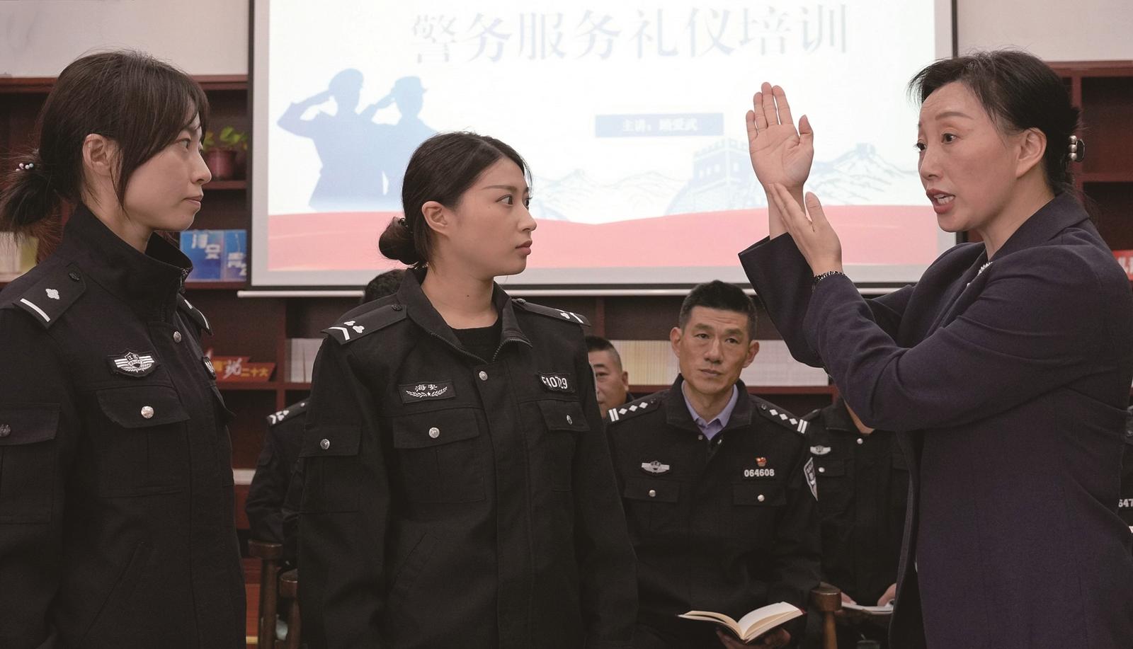 昨天,海安市公安局滨海新区派出所礼仪讲师在为民警、辅警演示指导服务礼仪。当天,海安市公安局滨海新区派出所组织开展警务服务礼仪专题培训,通过知识讲解、场景模拟、示范指导等形式,进一步提升民警、辅警的为民服务形象和水平。周强