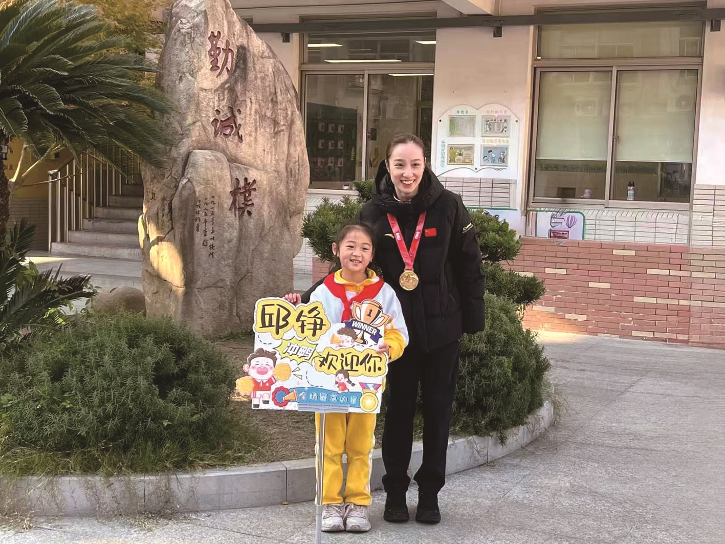 晚报讯 “欢迎邱铮姐姐回母校!”昨天下午,南通市跃龙桥小学操场上人头攒动,学生们齐声高呼,欢迎刚刚在2025年世界蹦床锦标赛上夺得女子团体冠军的邱铮。