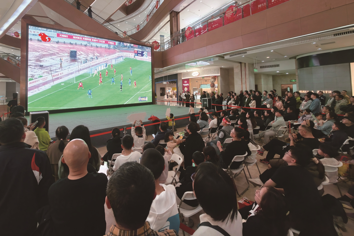 目光转向如东,细雨轻飘的城区里,室内观赛点成为球迷们的欢乐聚集地。喜润城室内广场人声鼎沸,10米宽的LED巨屏正实时播放比赛画面,百余个观赛席位座无虚席。坐在观众席最前排的市民刘雯带着10岁的儿子,难掩兴奋地说:“等了4个多月,‘苏超’赛季又开始了,大家的快乐回来了!”
