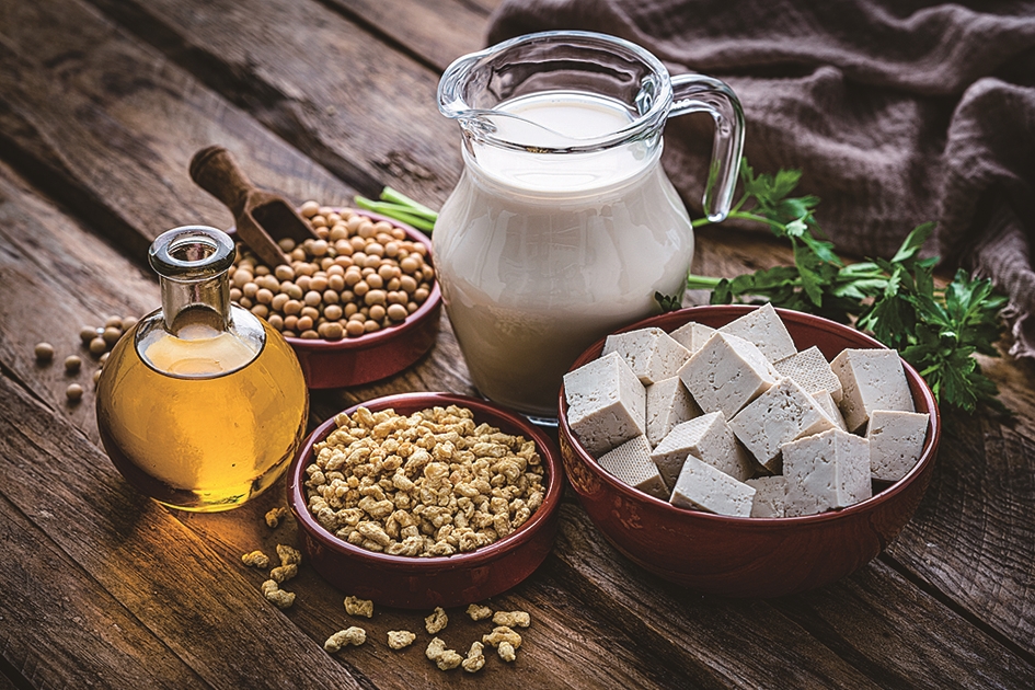 “增豆”指增加大豆及其制品的摄入。大豆是优质植物蛋白、B族维生素和膳食纤维的宝库,可预防肥胖和肌肉减少,维持骨骼健康。《中国居民膳食指南(2022)》推荐每日摄入相当于25—35克干大豆的量。如果将大豆换算成常见的豆制品,则要根据大豆含量换算摄入量。例如新鲜毛豆(带荚)需要75—120克,白豆腐需要50—75克,豆浆就需要摄入300—500毫升。