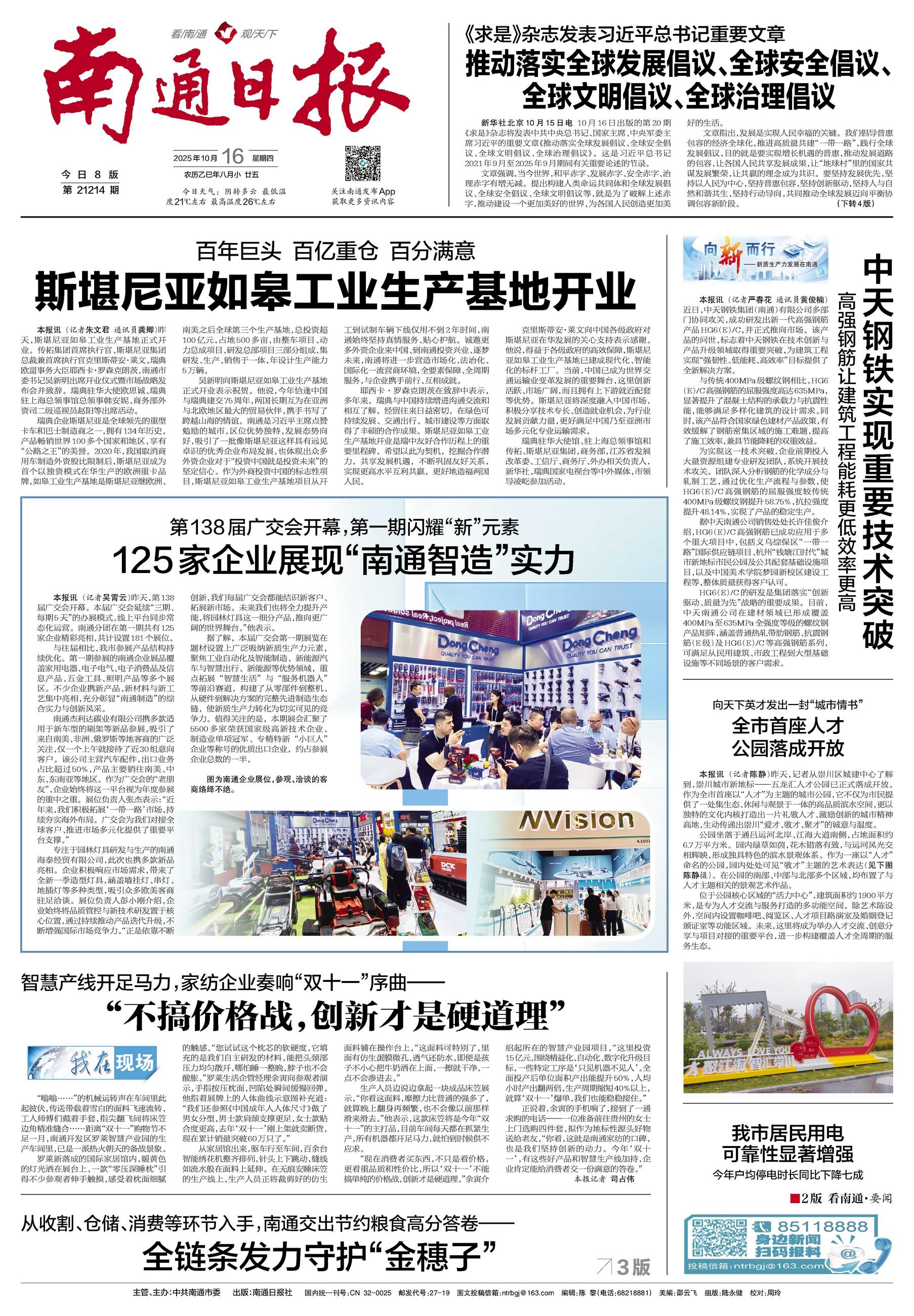据中天南通公司销售处处长许佳俊介绍,HG6(E)/C高强钢筋已成功应用于多个重大项目中,包括义乌综保区“一带一路”国际供应链项目、杭州“钱塘江时代”城市新地标市民公园及公共配套基础设施项目,以及中国美术学院梦园新校区建设工程等,整体质量获得客户认可。