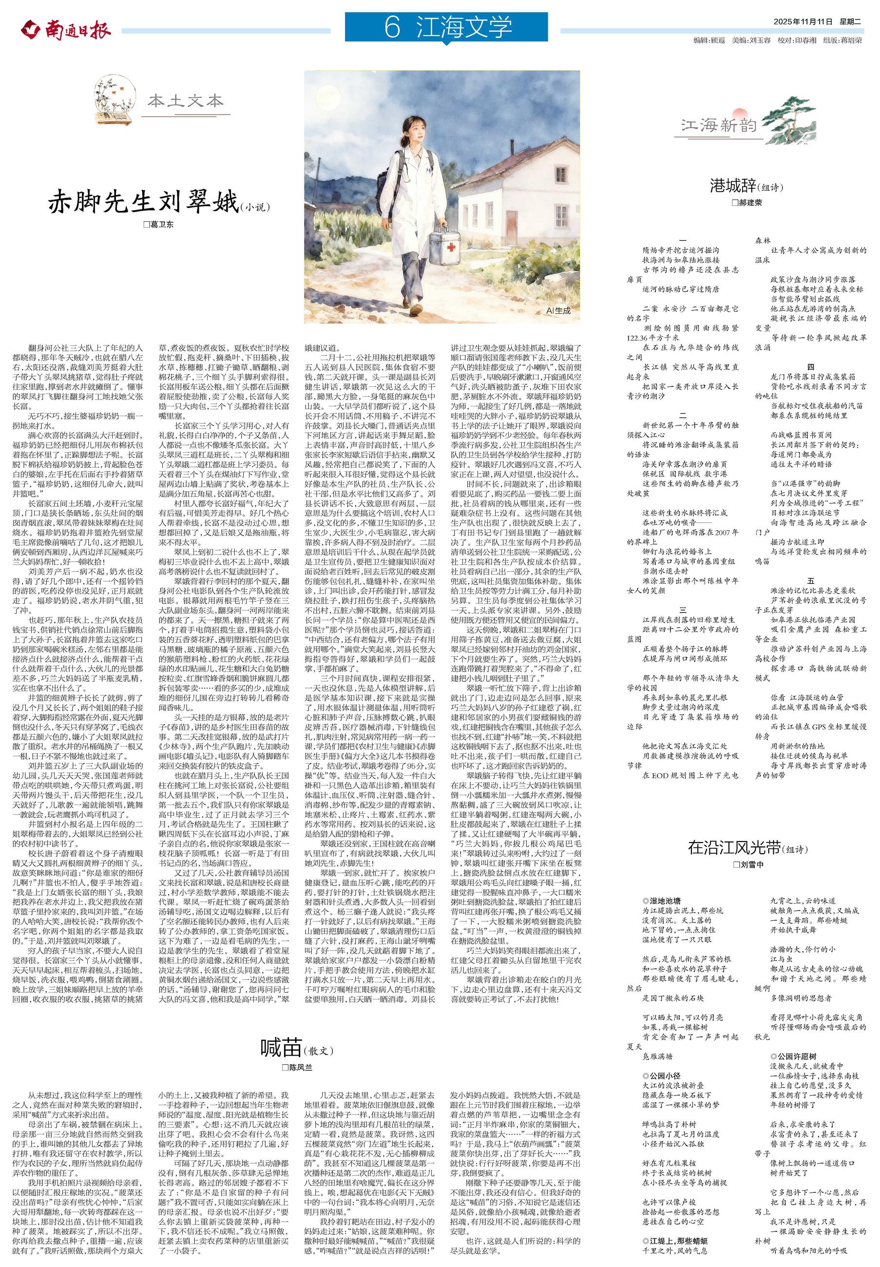也就在腊月头上,生产队队长王国柱在挑河工地上对张长富说,公社要组织人到县里学医,一个队一个卫生员,第一批去五个,我们队只有你家翠娥是高中毕业生,过了正月就去学习三个月,考试合格就是先生了。王国柱瞅了瞅四周低下头在长富耳边小声说,丁麻子亲自点的名,他说你家翠娥是张家一枝花脑子顶呱呱!长富一听是丁有田书记点的名,当场满口答应。