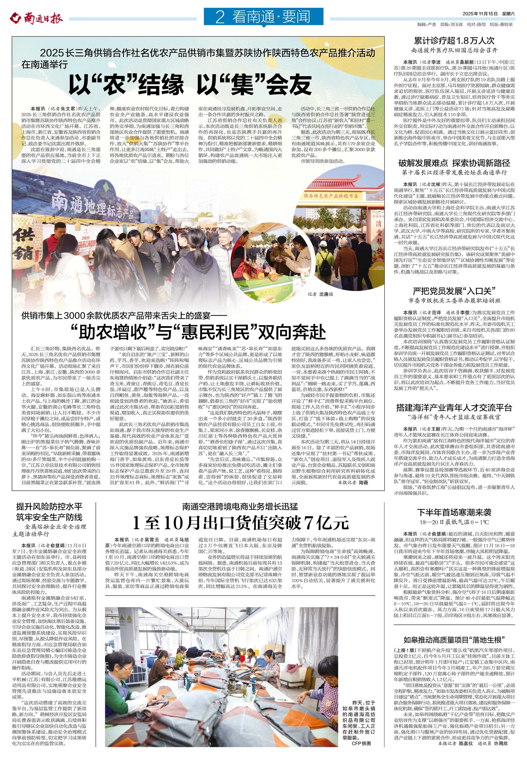 本次活动为期三天,将从14日持续开展至16日。除了丰富的农产品展销,现场还集中呈现了“驻村第一书记”帮扶成果、“新农人”创业项目、退役军人及残疾人就业产品、台资企业精品、苏超联名文创和南京野生植物综合利用研究所科研转化成果,全面展现新时代农业高质量发展的多元面貌。 本报记者 陆薇