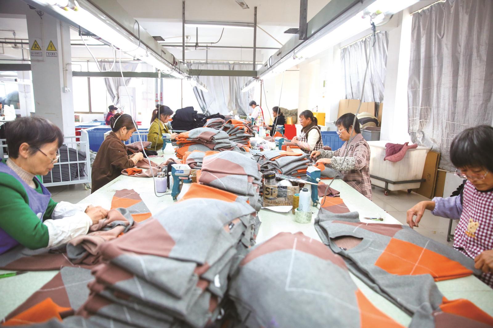 昨天,位于如皋市磨头镇的南通海高纺织品有限公司车间里,工人正在赶制外贸订单服装。