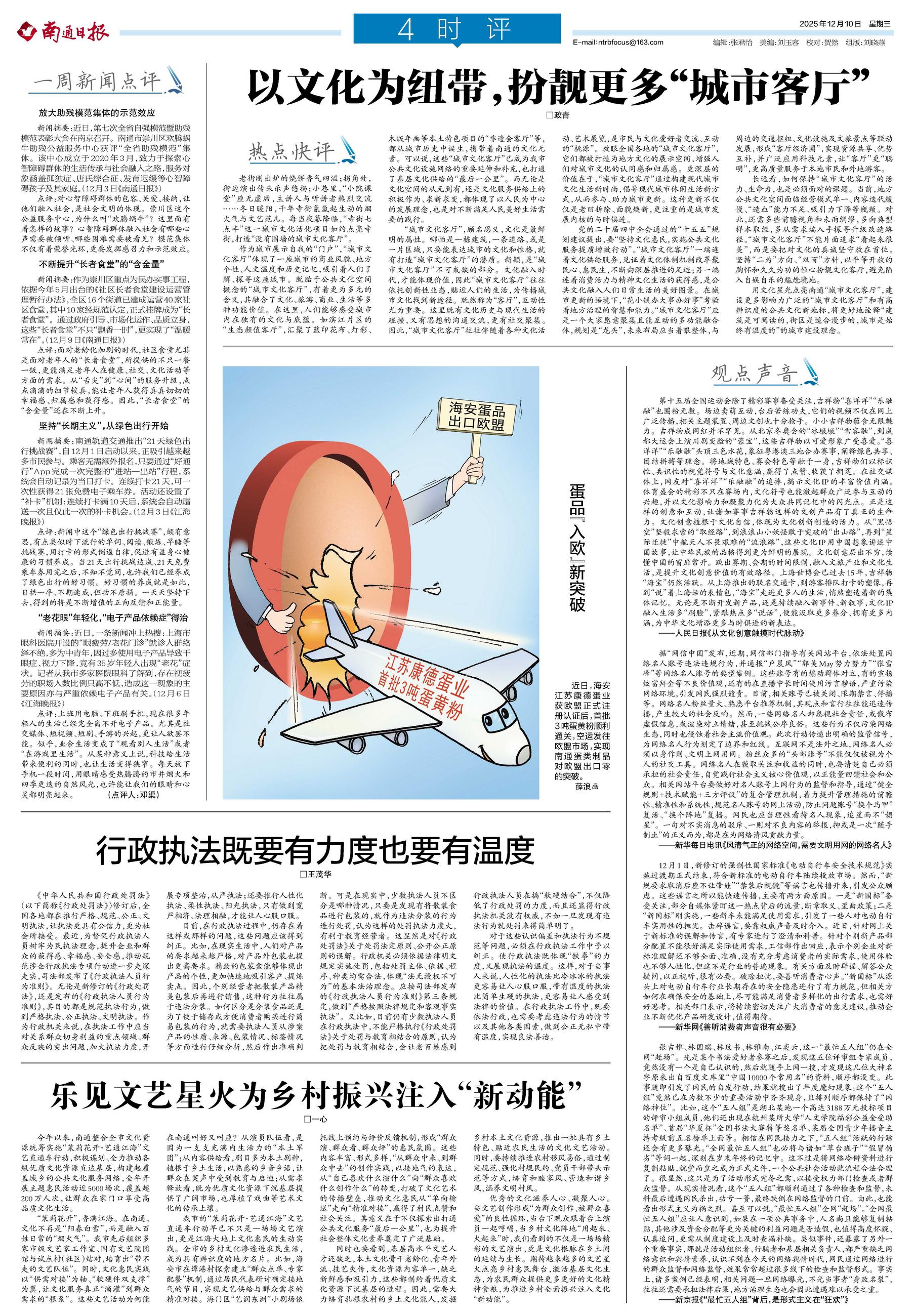 新闻摘要:作为崇川区重点为民办实事工程,依据今年5月出台的《社区长者食堂建设运营管理暂行办法》,全区16个街道已建成运营40家社区食堂,其中10家经规范认定,正式挂牌成为“长者食堂”。通过政府引导、市场化运作、品质立身,这些“长者食堂”不只“飘香一时”,更实现了“温暖常在”。(12月9日《南通日报》)