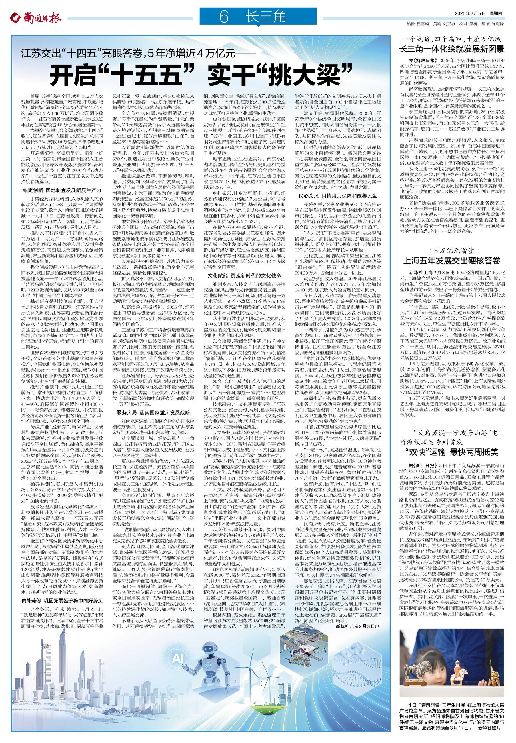 从丰富百姓生活到驱动产业发展,从守护文明根脉到滋养精神力量,江苏以丰富厚重的文化实践,诠释物质文明和精神文明相协调的现代化内涵。