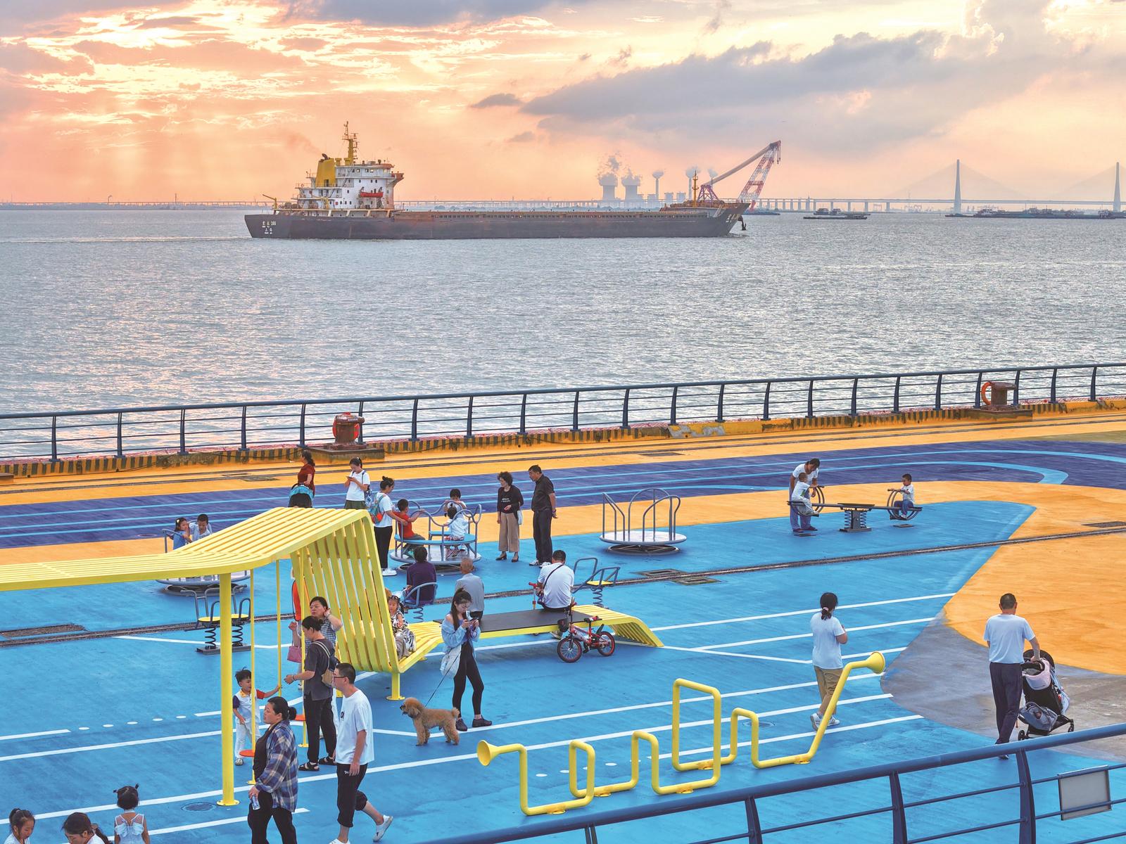 昨天傍晚,众多市民和游客在南通长江体育公园游玩、健身、欣赏美丽夕阳。南通长江体育公园对外开放近一个月,成为长江南通段深受欢迎的打卡地。据悉,紧邻长江南通段的南通长江体育公园整体分为绿茵足球、社区友好及休闲时尚三大主题功能区,将打造成为集市民休闲、运动健身、文化艺术及便民服务于一体的综合景观空间,满足各类人群多样化的运动与游憩需求。 记者 许丛军摄