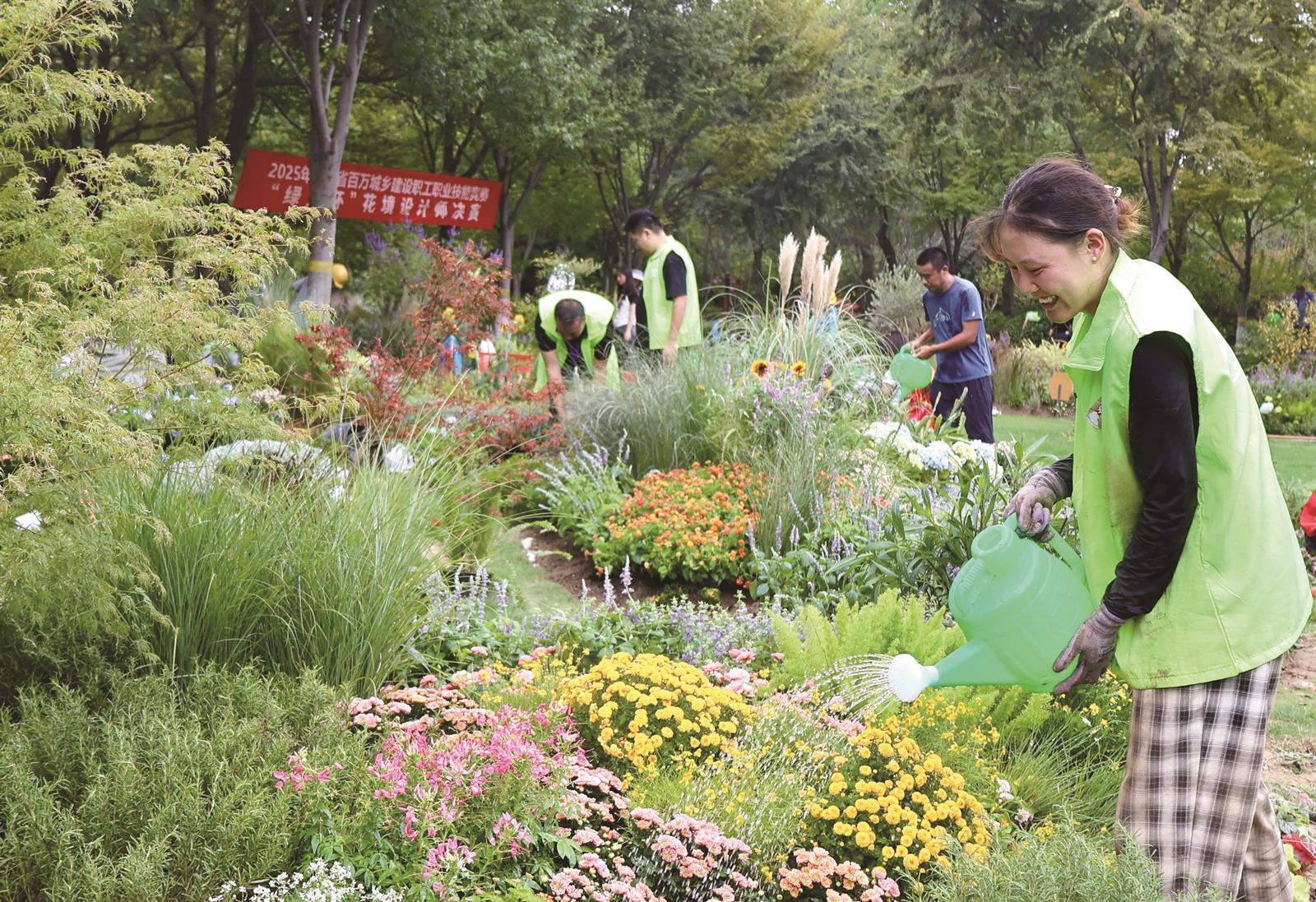 昨天,选手们参加现场实际操作环节比赛。9月22日—23日,2025年江苏省百万城乡建设职工职业技能竞赛“绿业杯”园林绿化工(花境)决赛在南通举行,全省13支代表队共60余位选手参赛。 记者 尤炼摄