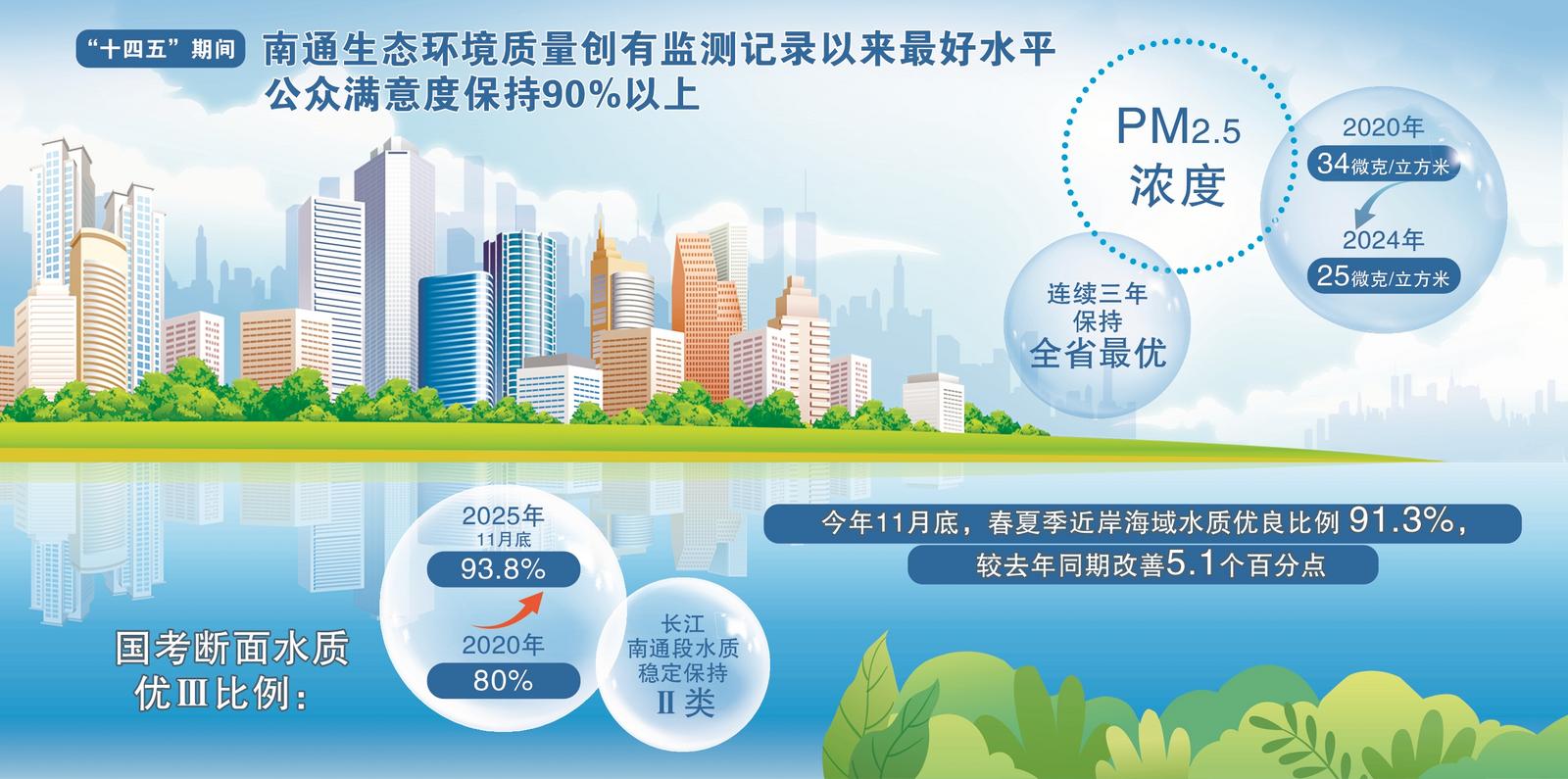 面向“十五五”,我市将聚焦生态环境实现根本好转目标,全面推进美丽南通建设,奋力推动高质量发展和高水平保护协同并进,全力打造美丽江苏南通样板,让优良生态环境成为最普惠的民生福祉。 本报记者 彭军君