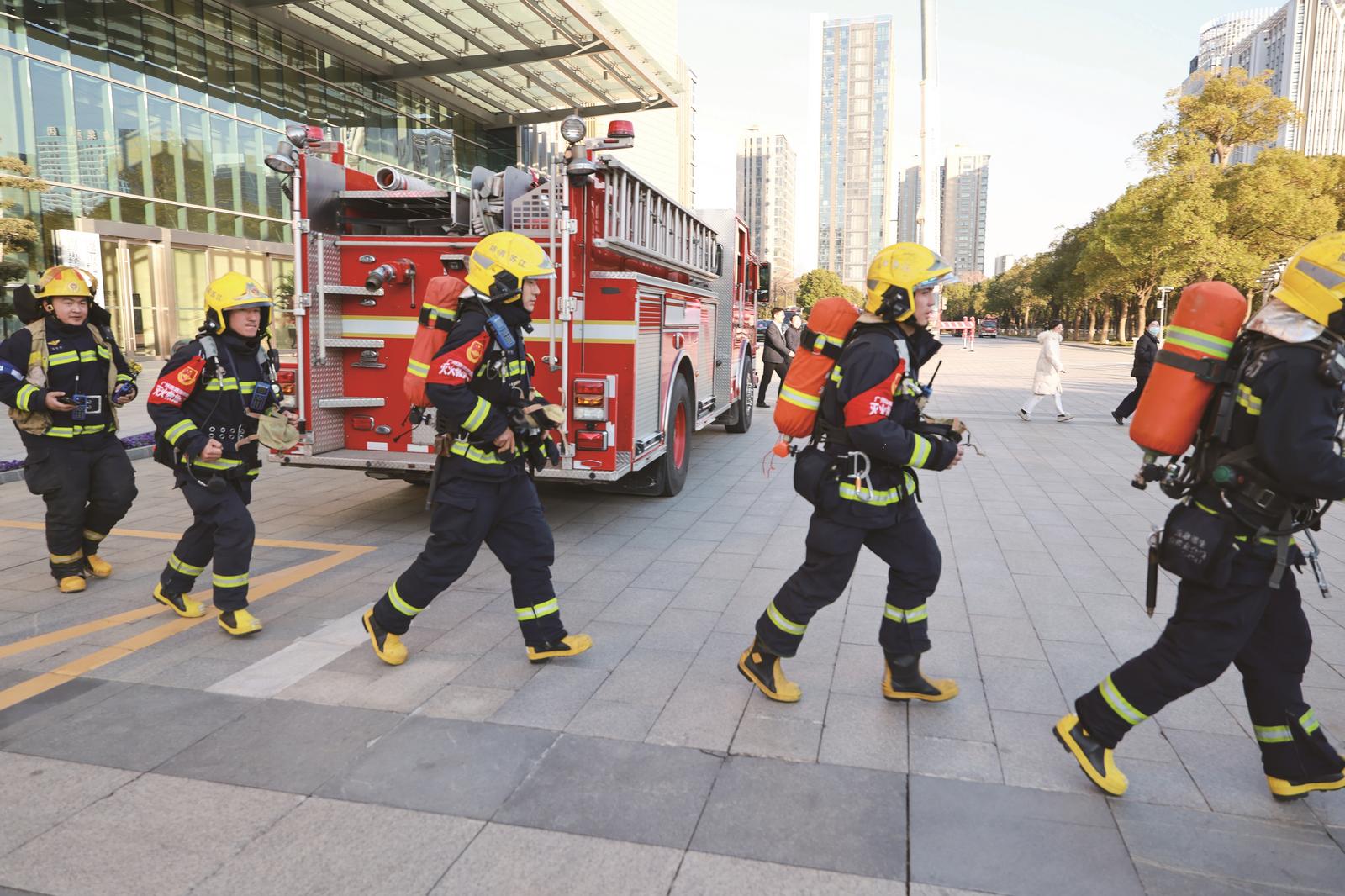 昨日下午,南通开发区党工委、管委会办公室联合区消防救援大队,在能达大厦组织开展了一场超高层实战化消防应急疏散演练,增强全员消防安全意识。 钱咸华摄