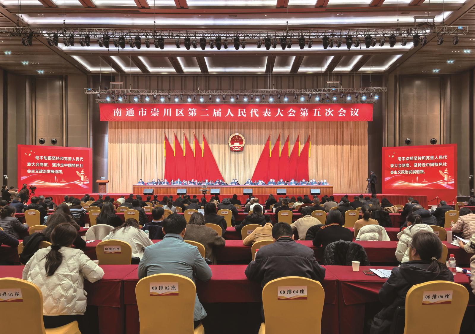 大会还表决通过了关于崇川区人民政府工作报告的决议、关于崇川区国民经济和社会发展第十五个五年规划纲要的决议、关于崇川区2025年国民经济社会发展计划执行情况和2026年国民经济社会发展计划的决议、关于崇川区2025年财政预算执行情况和2026年财政预算的决议、关于崇川区人大常委会工作报告的决议、关于崇川区人民法院工作报告的决议、关于崇川区人民检察院工作报告的决议。