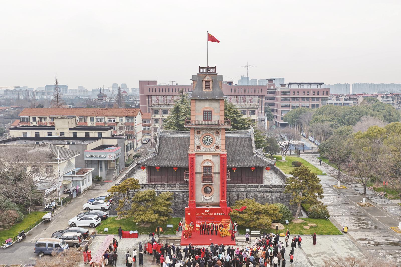 昨天,2026年“城门挂春联 江苏开门红”南通揭联仪式举行,在中外友人的共同见证下,巨幅大红春联亮相钟楼,为通城增添了喜庆和年味。书法家们现场挥毫泼墨书写福字,为百姓送去新春祝福。“城门挂春联”已成为江苏春节新民俗,该活动入选中宣部传承弘扬中华优秀传统文化主要活动之一。 记者 许丛军摄