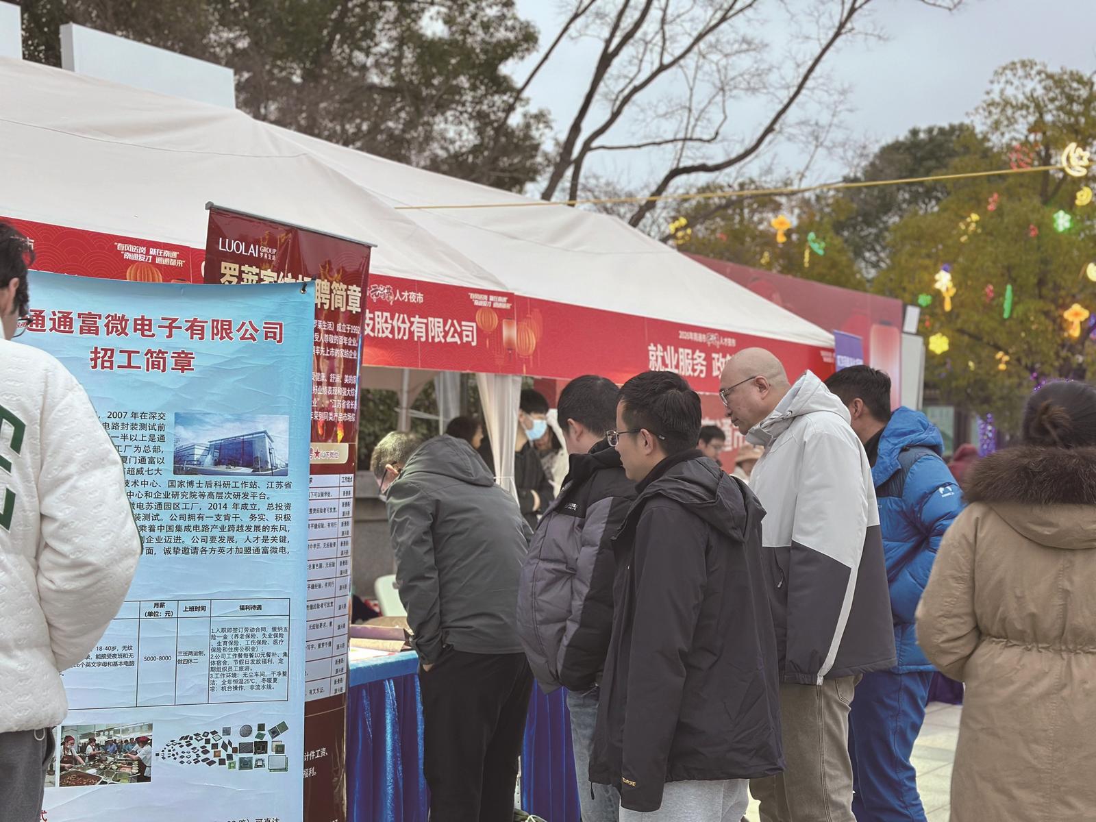 在狼山景区北入口广场,两排摊位整齐铺开。中天科技、政田重工等21家用人单位化身“摊主”,携700多个优质岗位“挑灯”揽才(下图 何家玉摄),岗位涵盖高端纺织、机械制造、电子电气等行业,涉及数控操作工、机械工程师、仓库管理员、质检员等工种,充分满足不同求职群体的就业需求。
