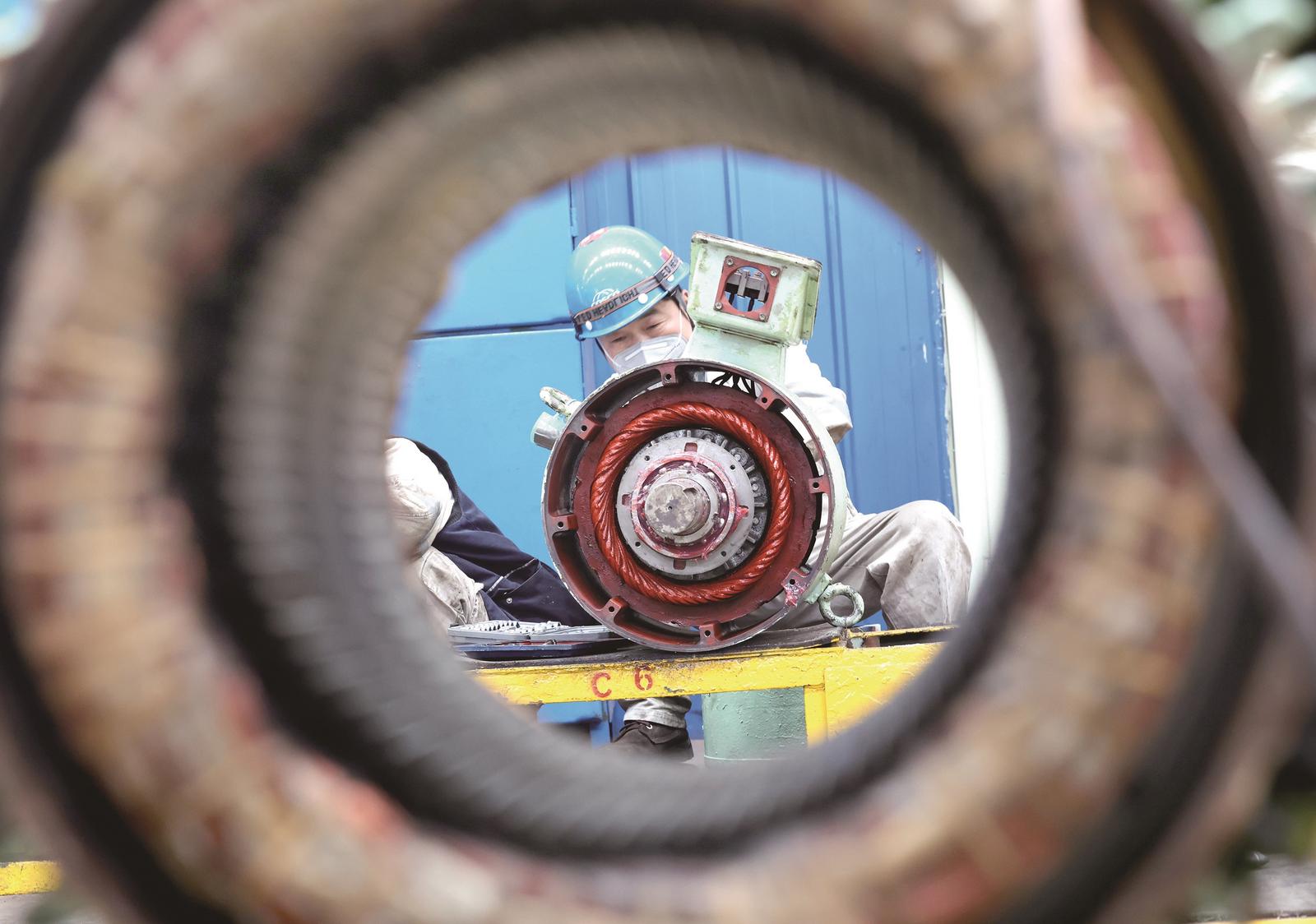 11日,技术人员在崇川区船舶海工产业带南通中远海运船务工程有限公司机电车间忙碌维修电机马达。中远海运船务今年1月获评 “国家级绿色工厂”,在绿色转型道路上迈入行业标杆行列。 记者 许丛军摄