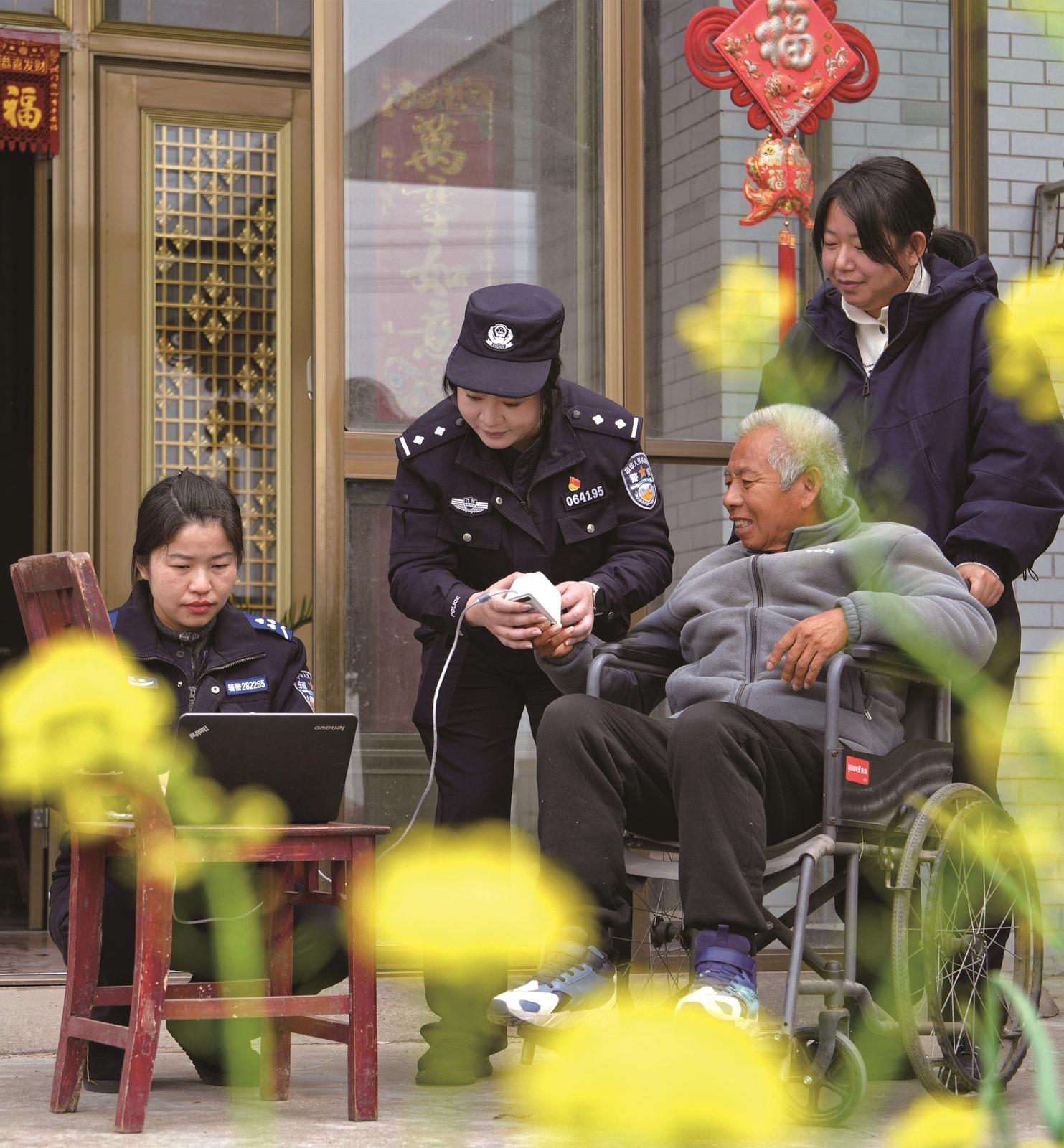 昨日,户籍民辅警在海安市墩头镇墩西村为行动不便老人上门采集验证身份信息,办理身份证到期换证业务。今年,海安市首批有效期为20年的第二代居民身份证陆续期满,当地公安机关推出一系列便民服务举措,保障居民身份证换证工作安全、有序、高效推进。 周强摄