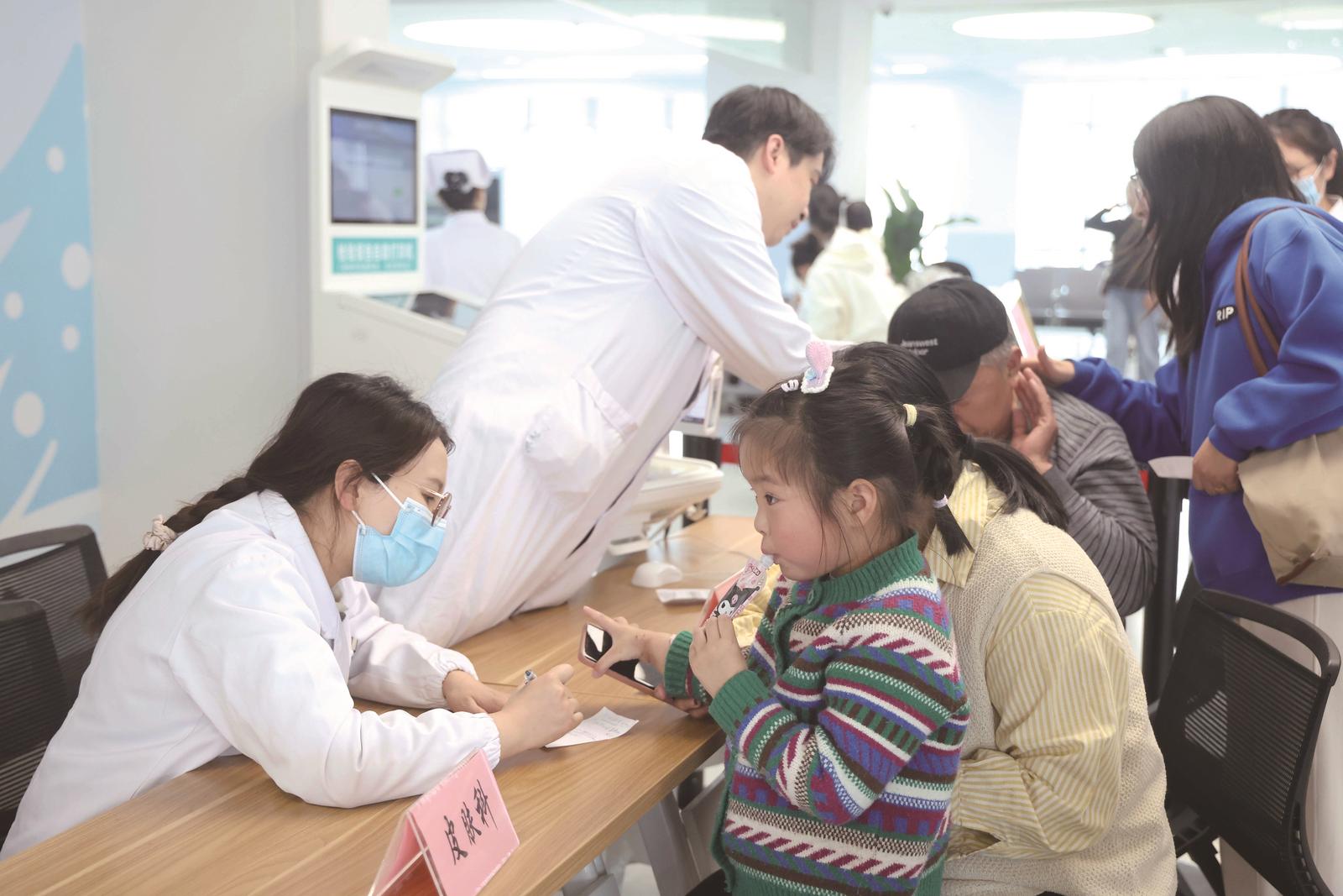 昨日,市第一人民医院依托“一院健康π”公益服务品牌,开展春假“护苗”义诊活动。现场汇聚十大专科资深专家,聚焦儿童青少年肥胖、近视、心理行为异常、龋齿等健康问题,通过“筛查+诊疗+体验+科普”四位一体的模式,全方位守护儿童青少年身心健康。 记者 徐培钦摄